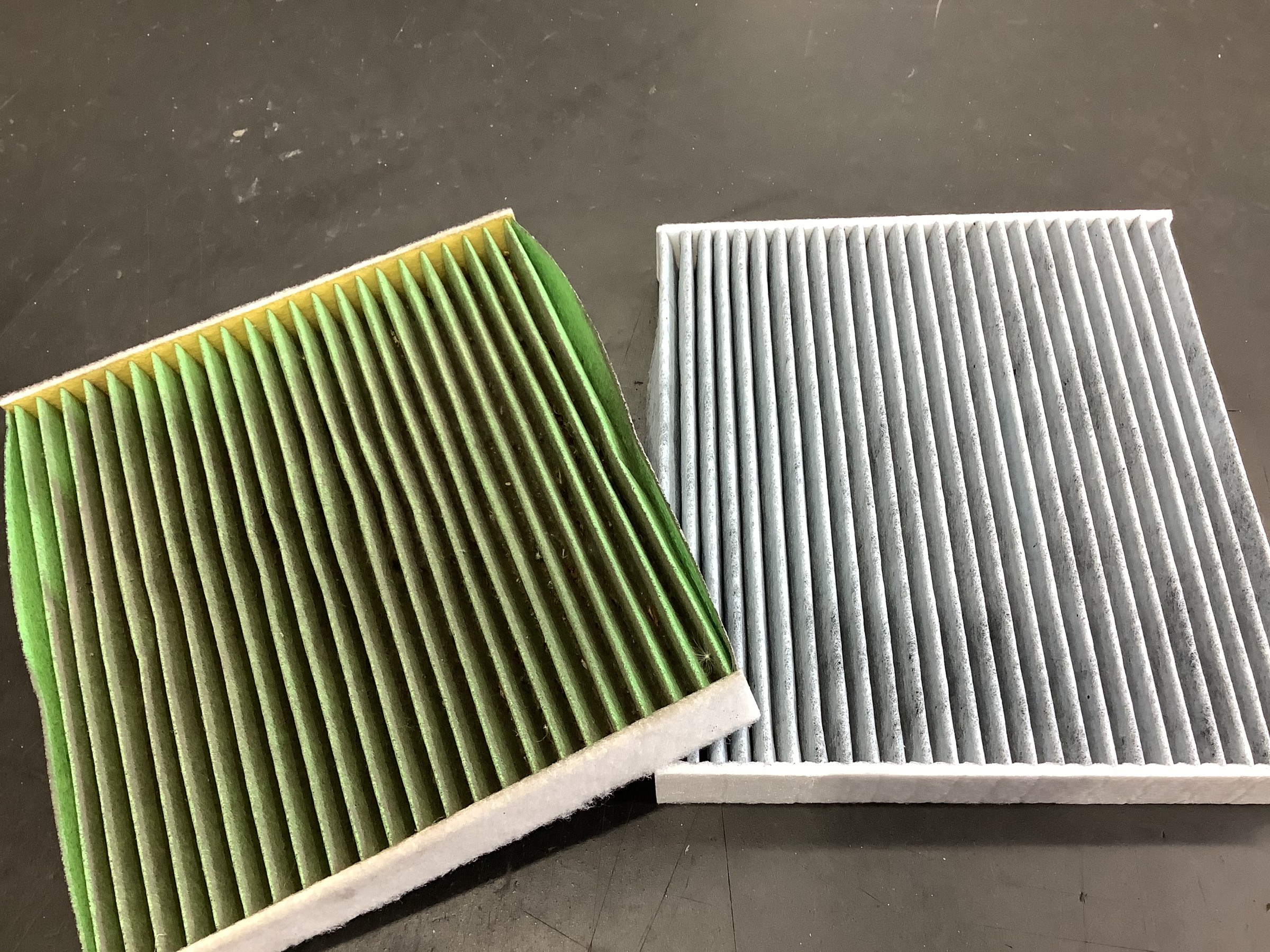 左が取り外したフィルター 右が新しく取り付けるフィルターです