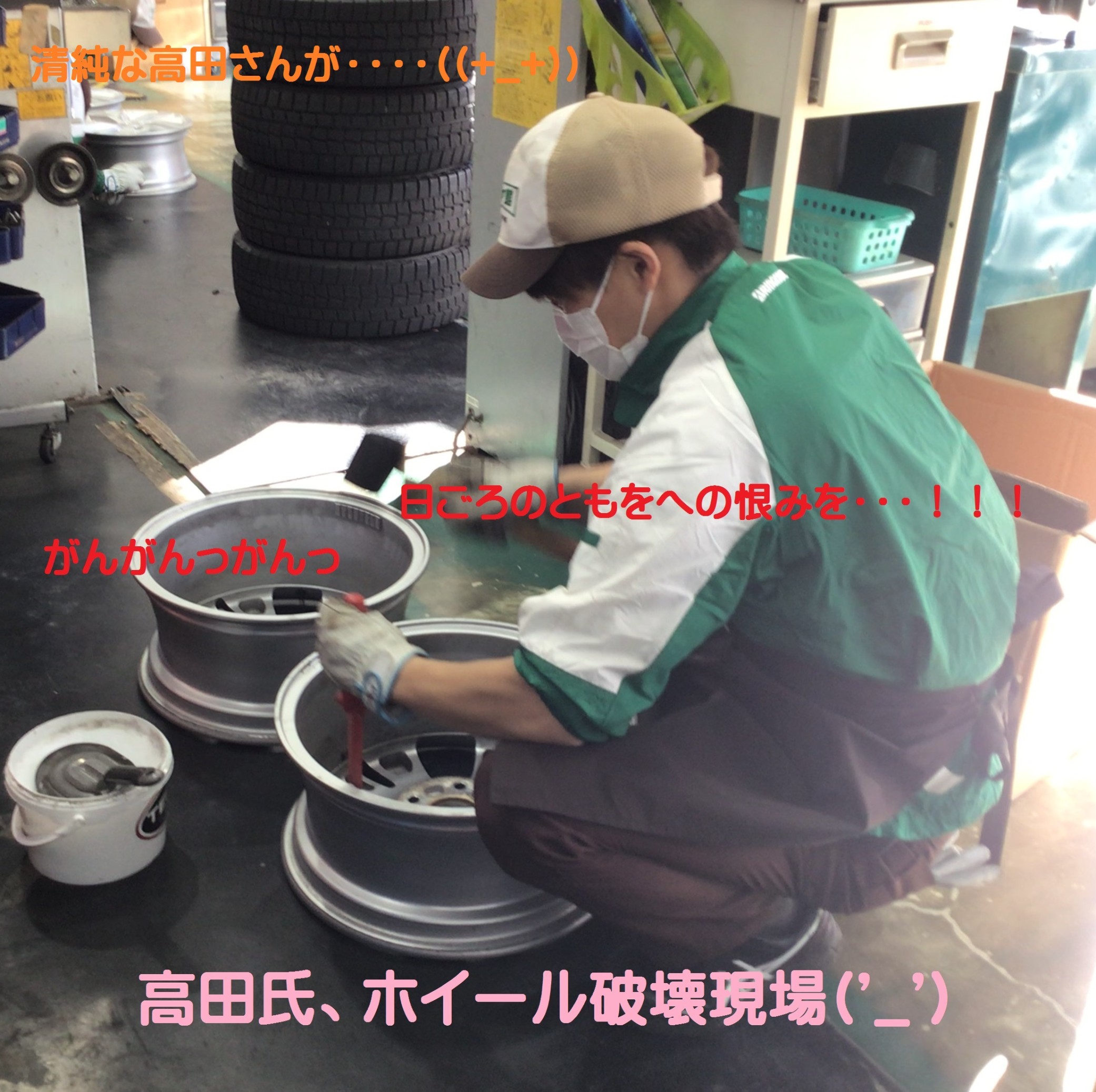 さて、高田さんのホイール壊しの現場を激写しました( ^)o(^ )
