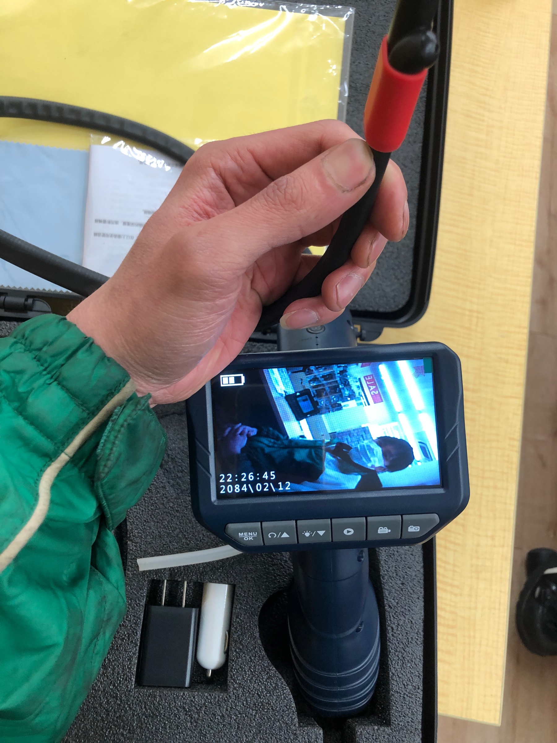 この様なカメラのついた機械を使ってエバポレーター本体を探し洗浄していきます!!