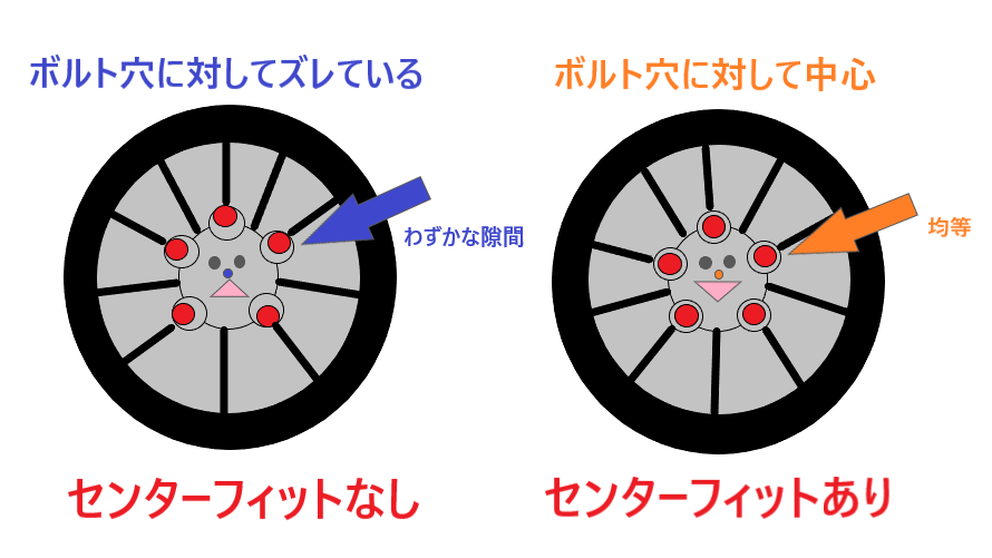 その隙間の分だけタイヤは車軸の中心からずれてしまうのです(´;ω;`)