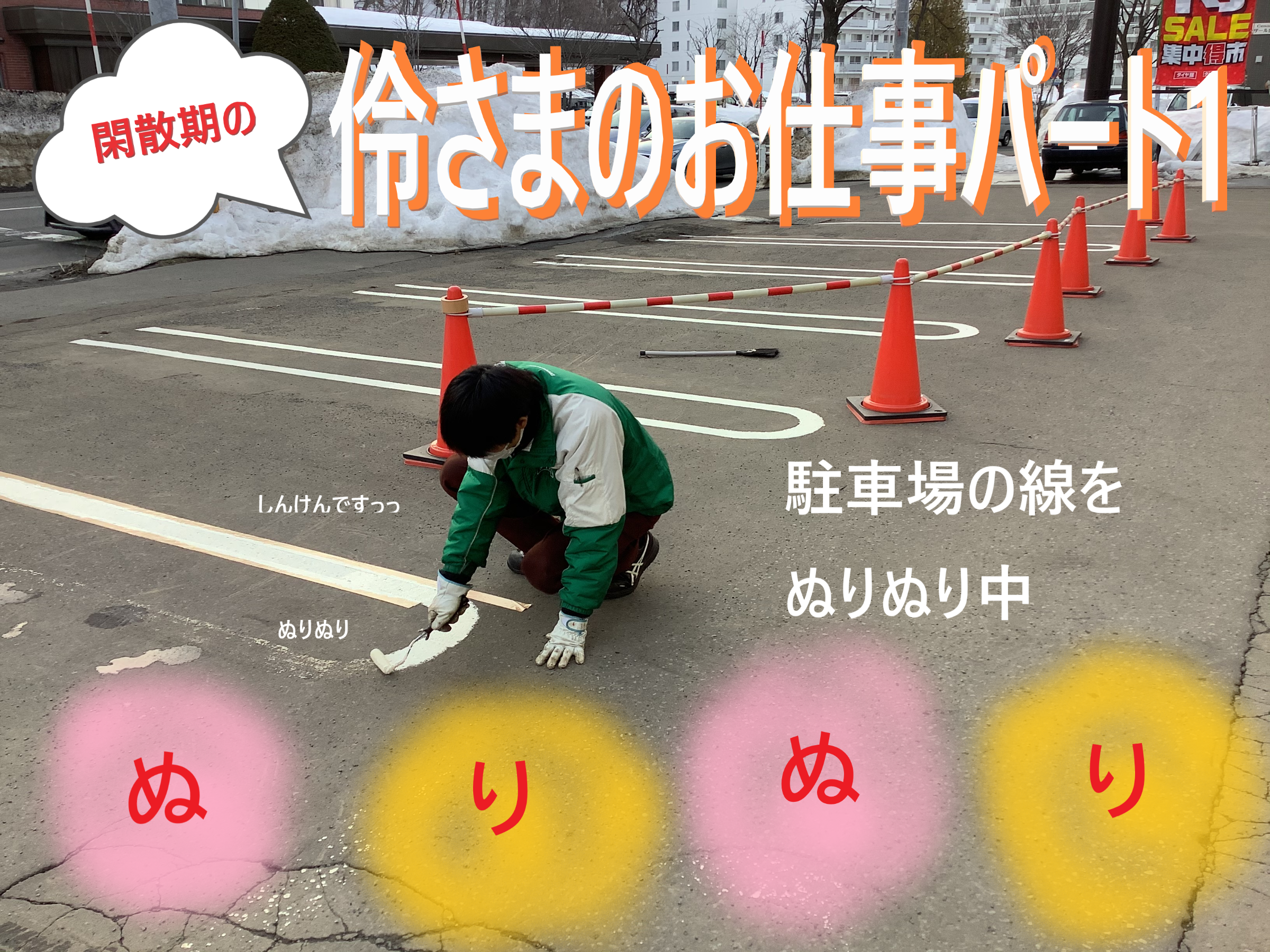みなさまが停めやすいよう、ぬりぬりしています。