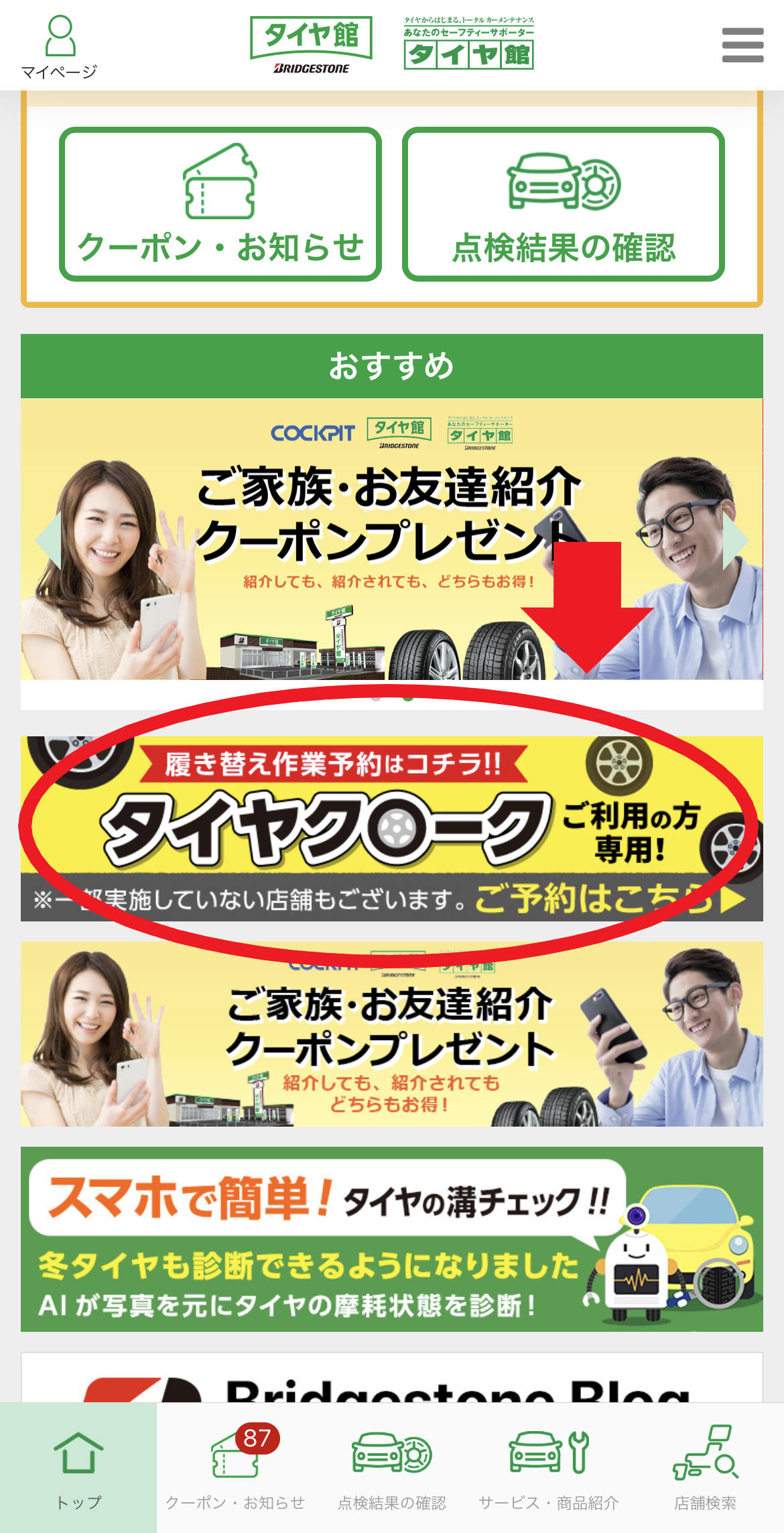 タイヤ館アプリをご登録の方は、