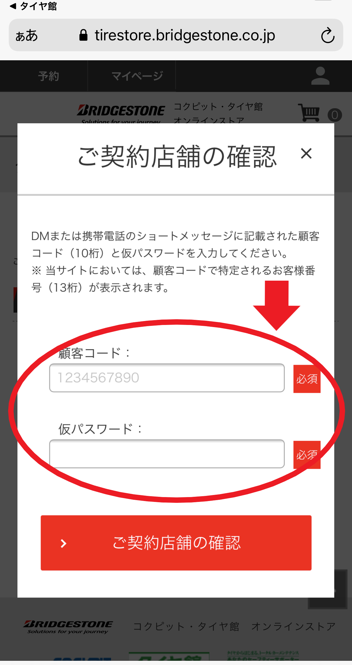 顧客コードと仮パスワードの入力があります。