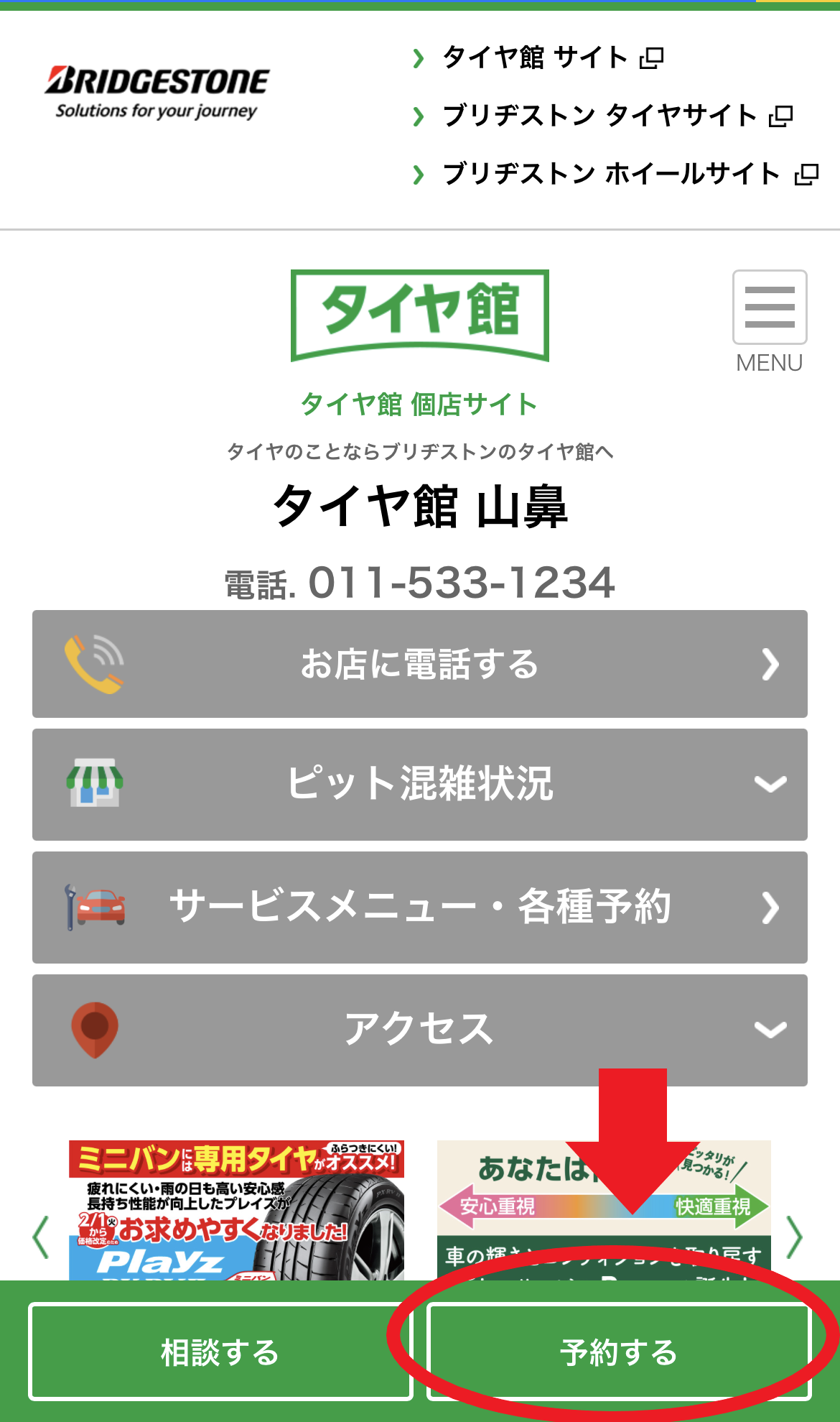 タイヤ館山鼻店のホームページにアクセスしていただき、
