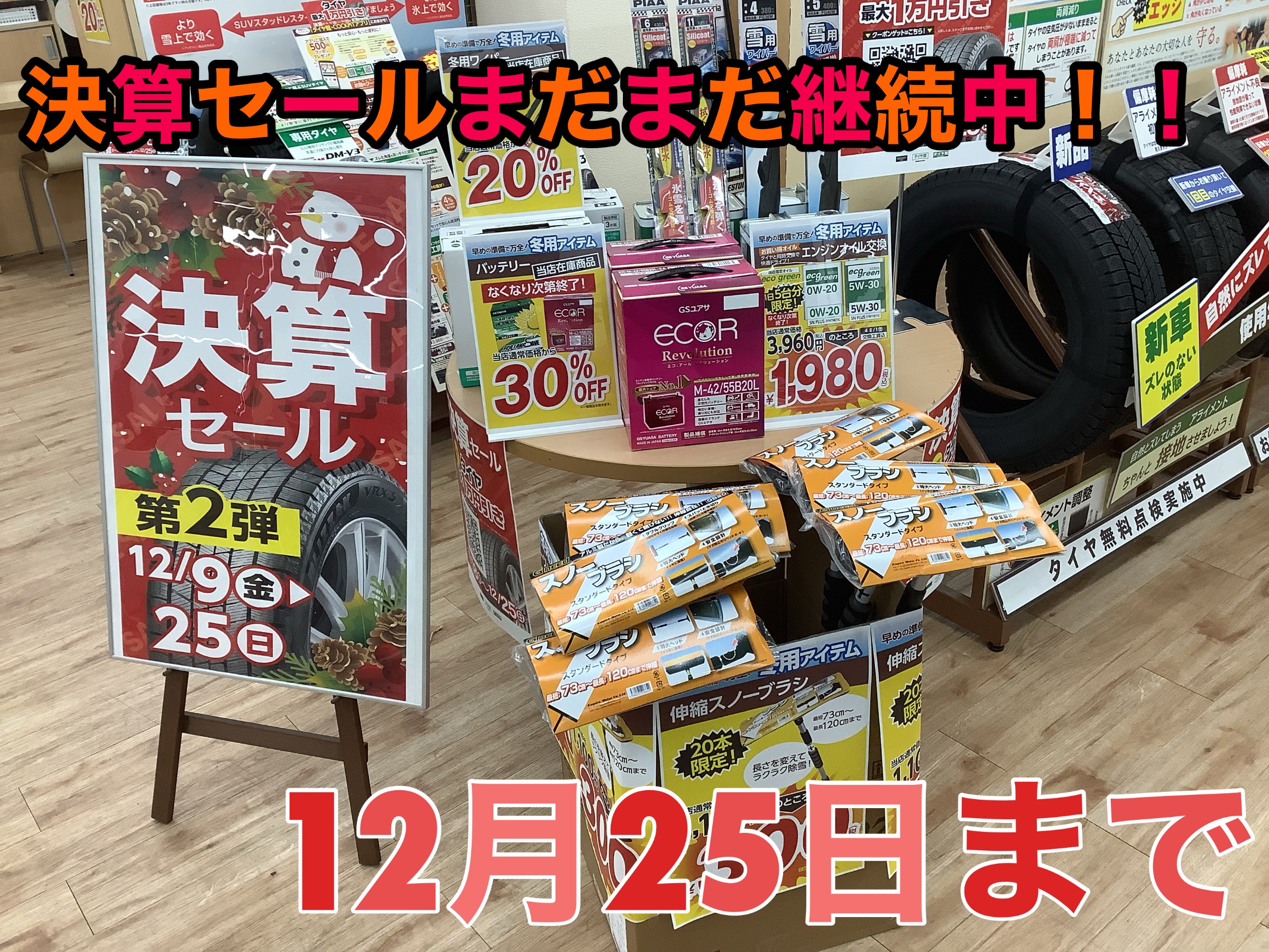 決算セール引き続き開催中♪ ポスト 2022年12月14日 冬に必要不可欠なす「伸縮スノーブラシ」が大変お得に販売中です。 バッテリーも店頭表示価格より30%OFFとこちらも大変お得になっています。 冬は寒さによりバッテリーの性能低下が著しくなります。 急なトラブル前にお得なこの時期に交換をおススメしています。 WEBチラシはこちら ご来店お待ちしています。 担当:トモヲ