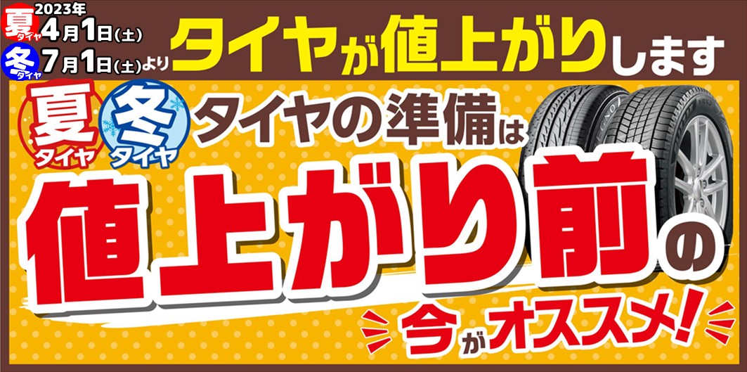 これから夏シーズンに向け商品入れ替えに伴い夏タイヤも在庫処分価格でご案内いたします。