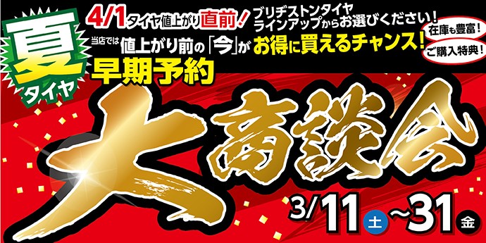 3月31日まで夏タイヤ早期予約大商談会+プレミアムタイヤセール開催中☆