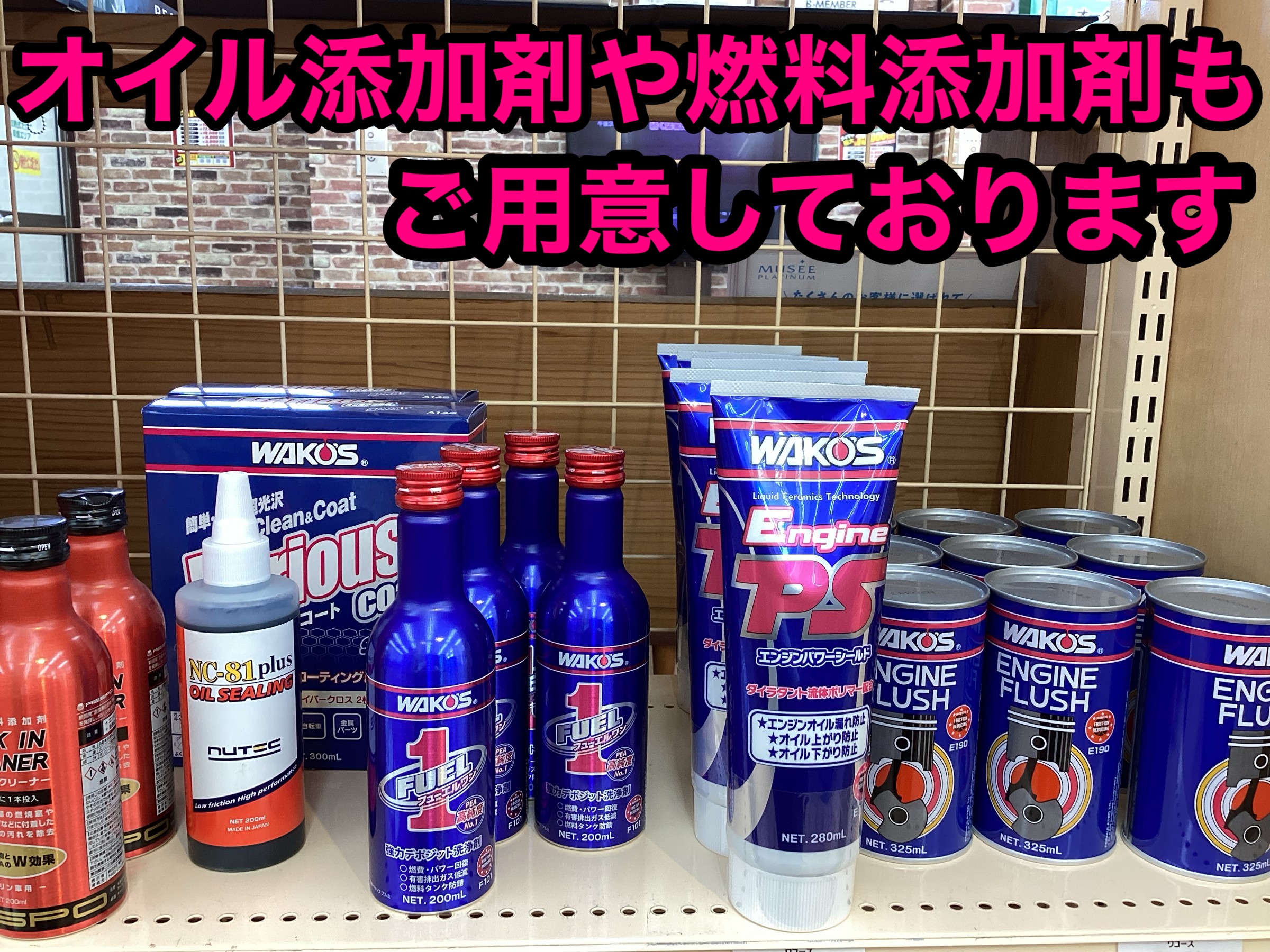 また、オイル添加剤や燃料添加剤などもご用意しています。