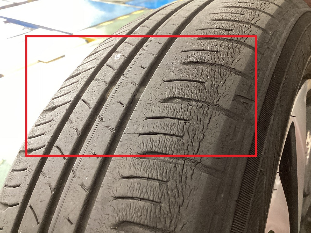 交換作業をする前のタイヤは、ところどころひび割れが発生していました。