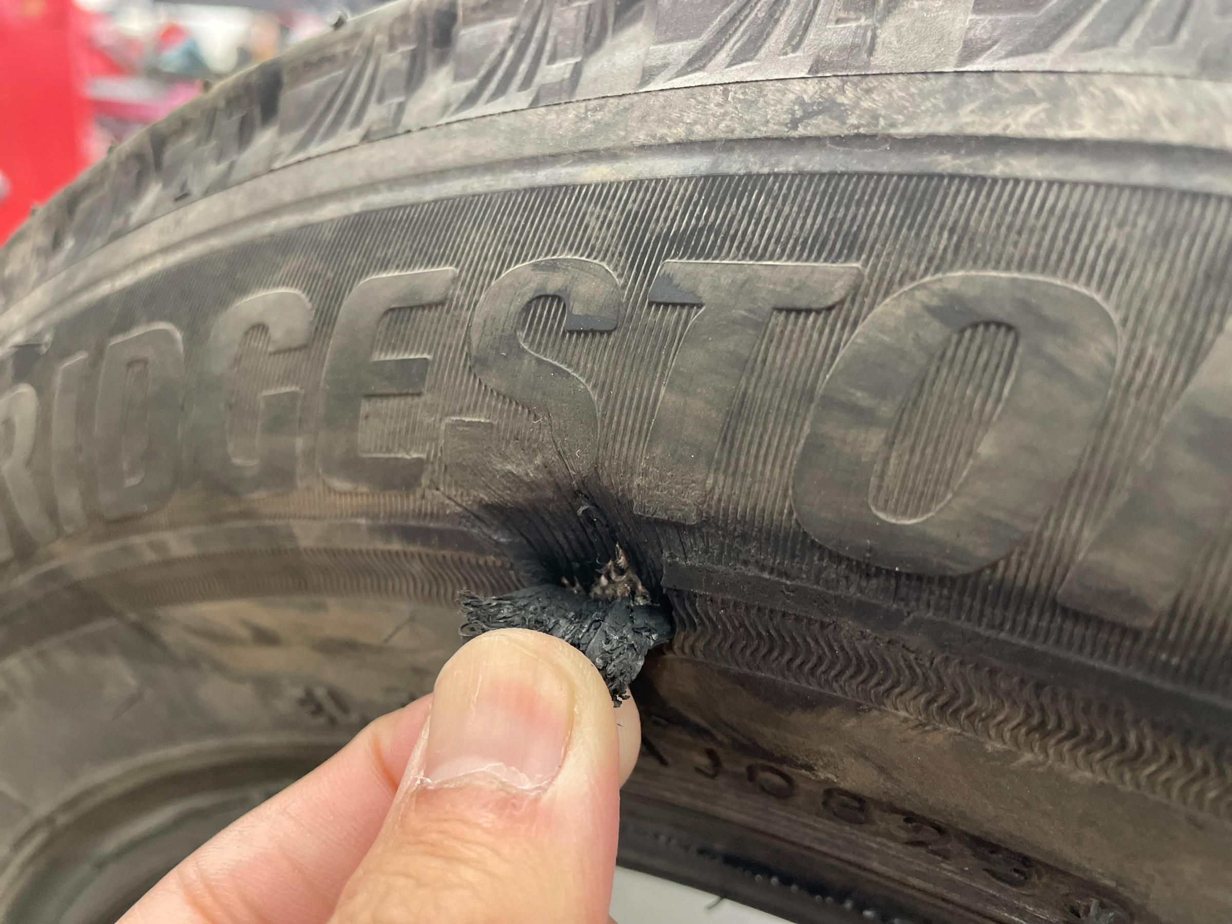 タイヤのコードが見えていました…