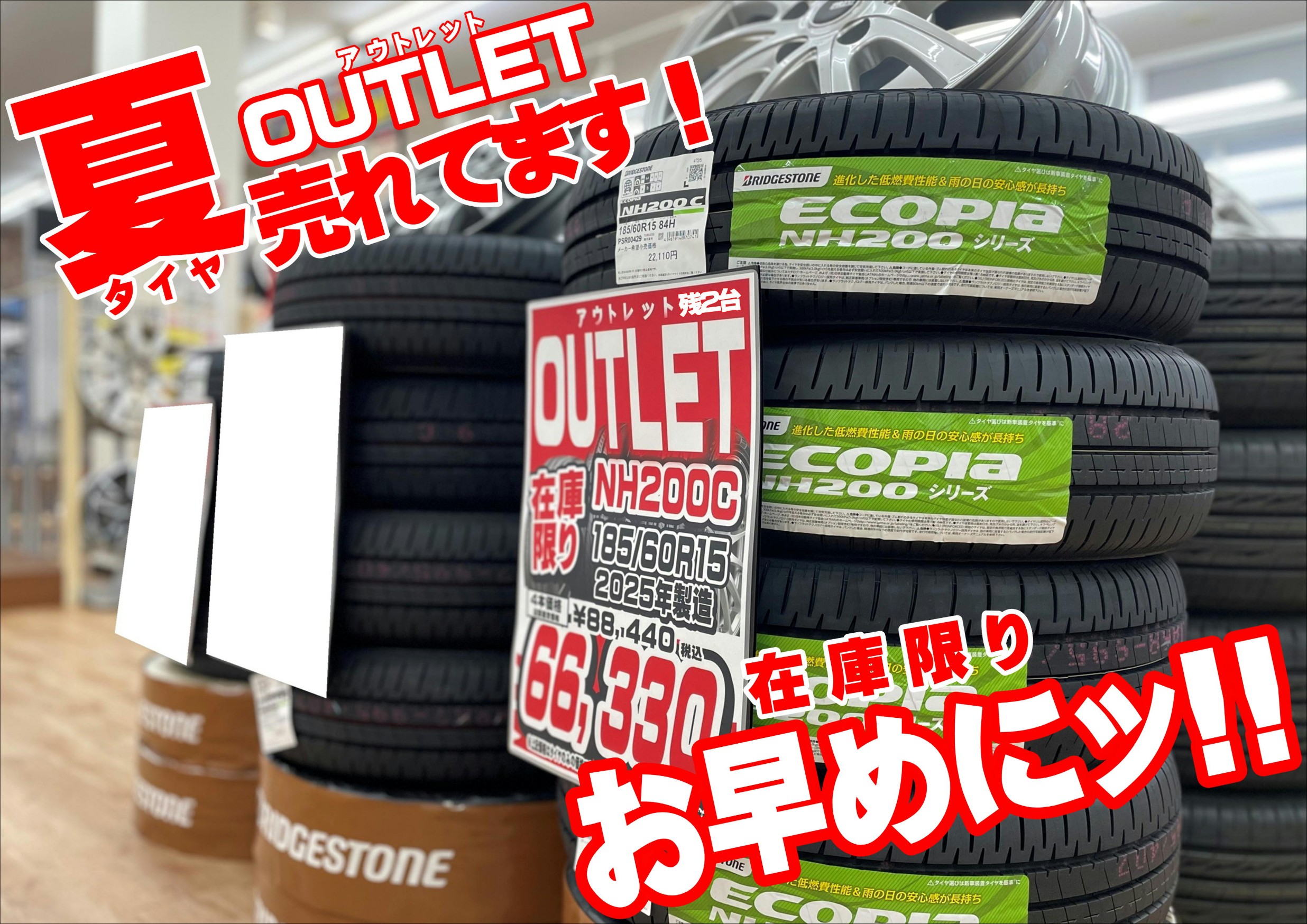 タイヤ館山鼻では、新品アウトレットタイヤも販売しております。