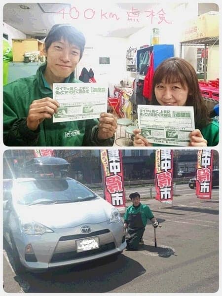 100KM点検はタイヤ交換、新品タイヤをご装着の方にご案内しております。