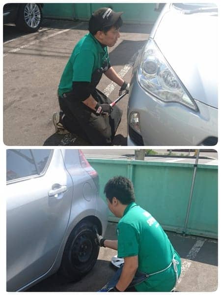 もう一度空気圧とホイールナットのの増し締めをさせていただきたーいという