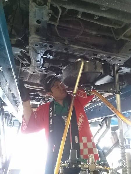写真②店長自らオイル交換作業!!!(たま~に見れますよ♪)