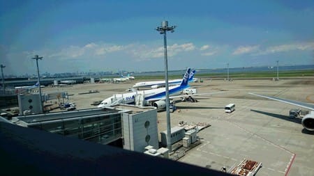 飛行機に乗って先に帰ってきました。
