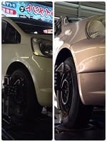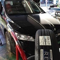 タイヤが損傷・・・(T_T) 新品タイヤ交換はからのアライメント。