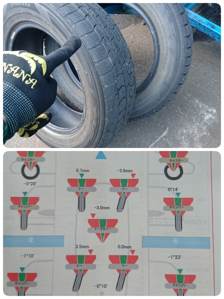 こんな減り方していたらタイヤの取り付け角度がズレている可能性があります。