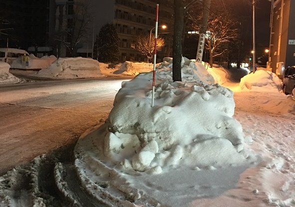 道路からお店が見えず、お店から道路に出る時も雪山が高すぎて見えず!