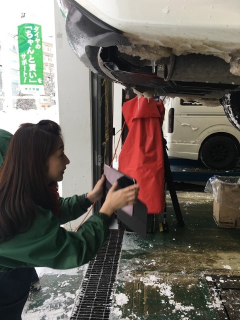 お客様のお車の下廻りのサビチェックをしているところです。