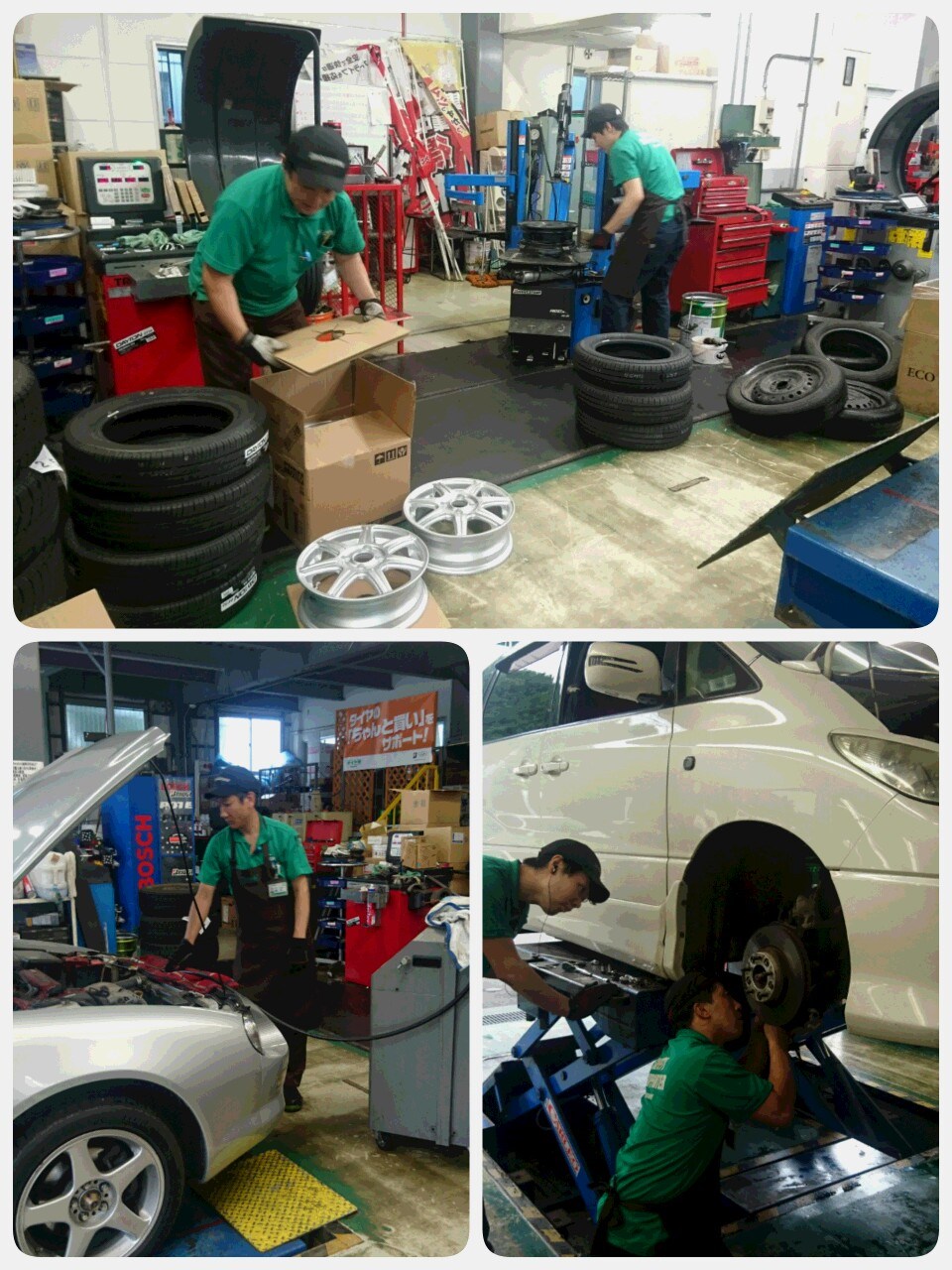 小林店長と高橋スタッフでタイヤの組み込み頑張ってます!!!