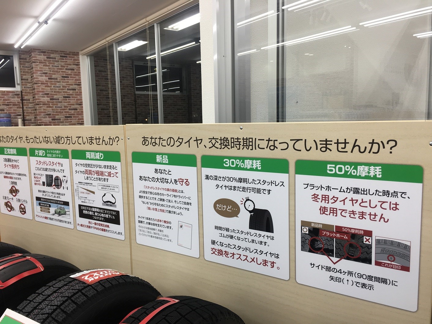 私たちはタイヤ選びのお手伝いだけじゃなく、お客様のお車の使い方、現在のタイヤの状態のチェック