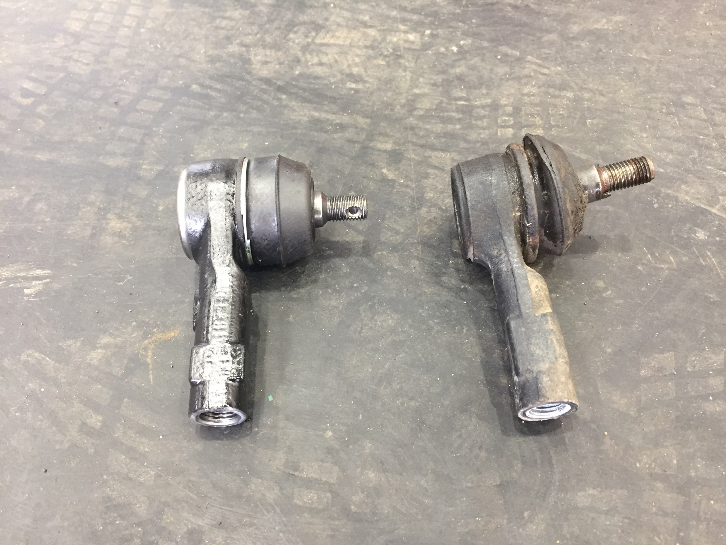 本日はタイロッドを交換させていただきました。左が新品で右がガタの出てた部品です!