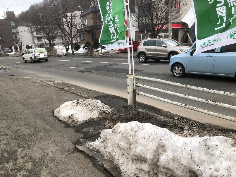 道路際の雪がすごい勢いで無くなっています。氷割りをしようかなと思わないほど雪解けが早い!!