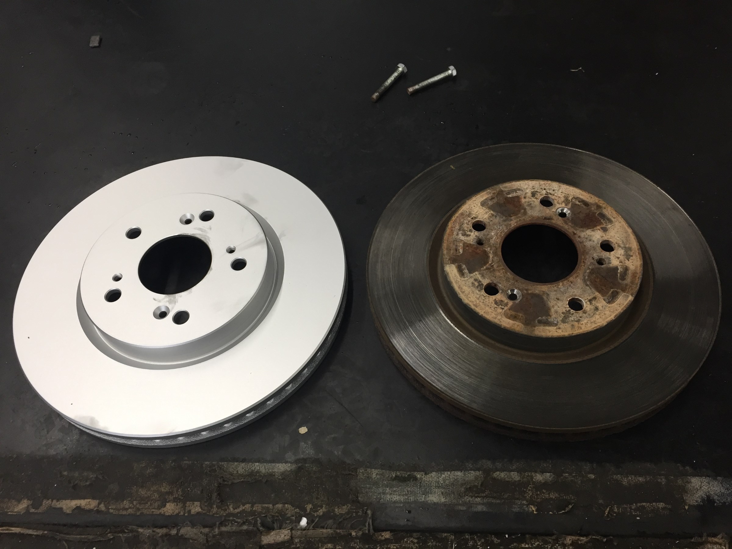 車検もおまかせ☆ ポスト 2018年6月8日 本日はあいにくの雨でしたね・・・ そんな中たくさんのご来店ありがとうございました! 本日は車検の入庫がありました! バッテリーのお取替え ブレーキローター交換 左が新品です 当店は認証工場ですので足回り部品の交換もお任せください! 明日は週末!たくさんのご来店をお待ちしております! 担当:佐藤