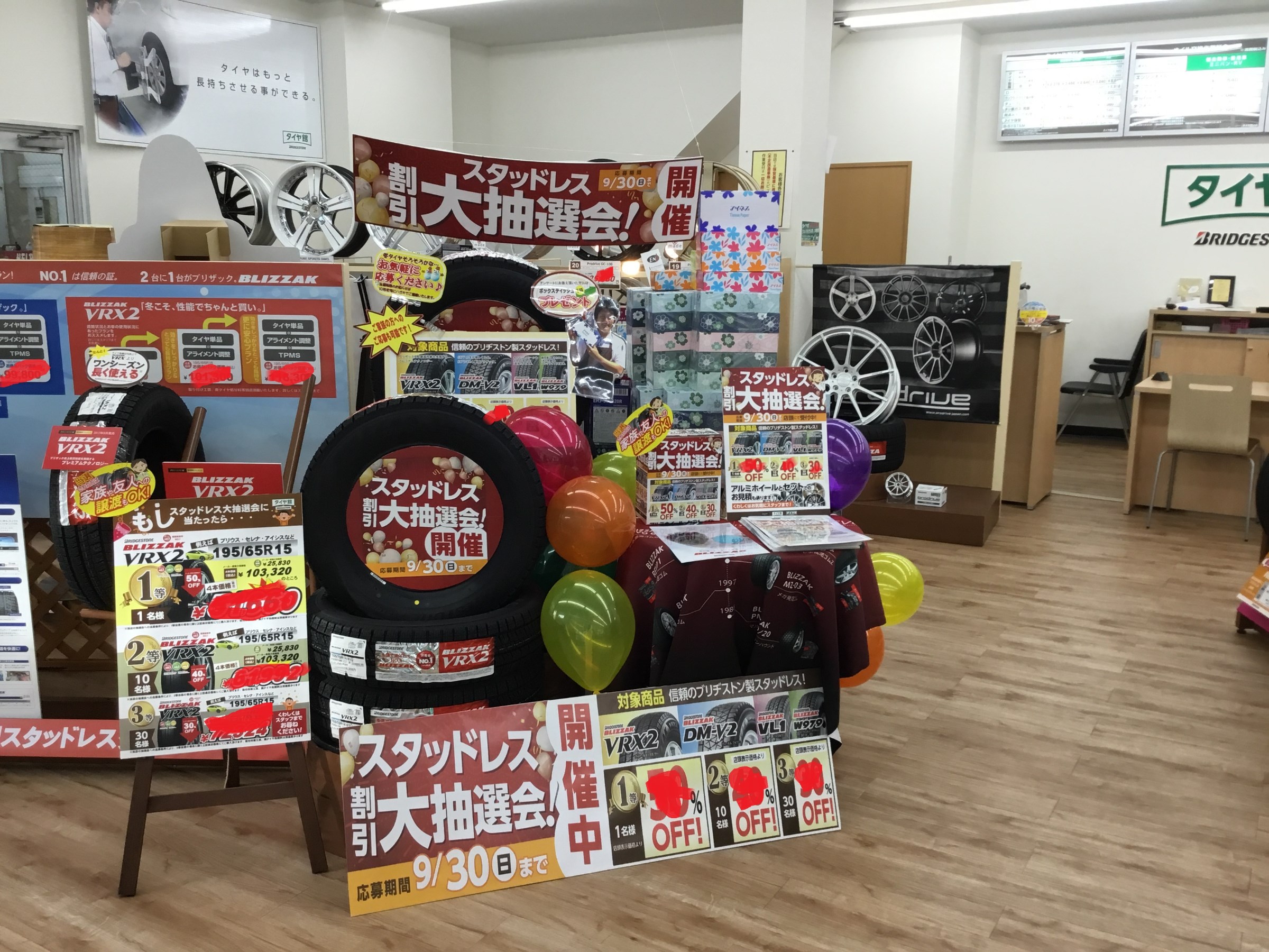 また店内ではスタッドレス割引大抽選会のご応募を受付しております!