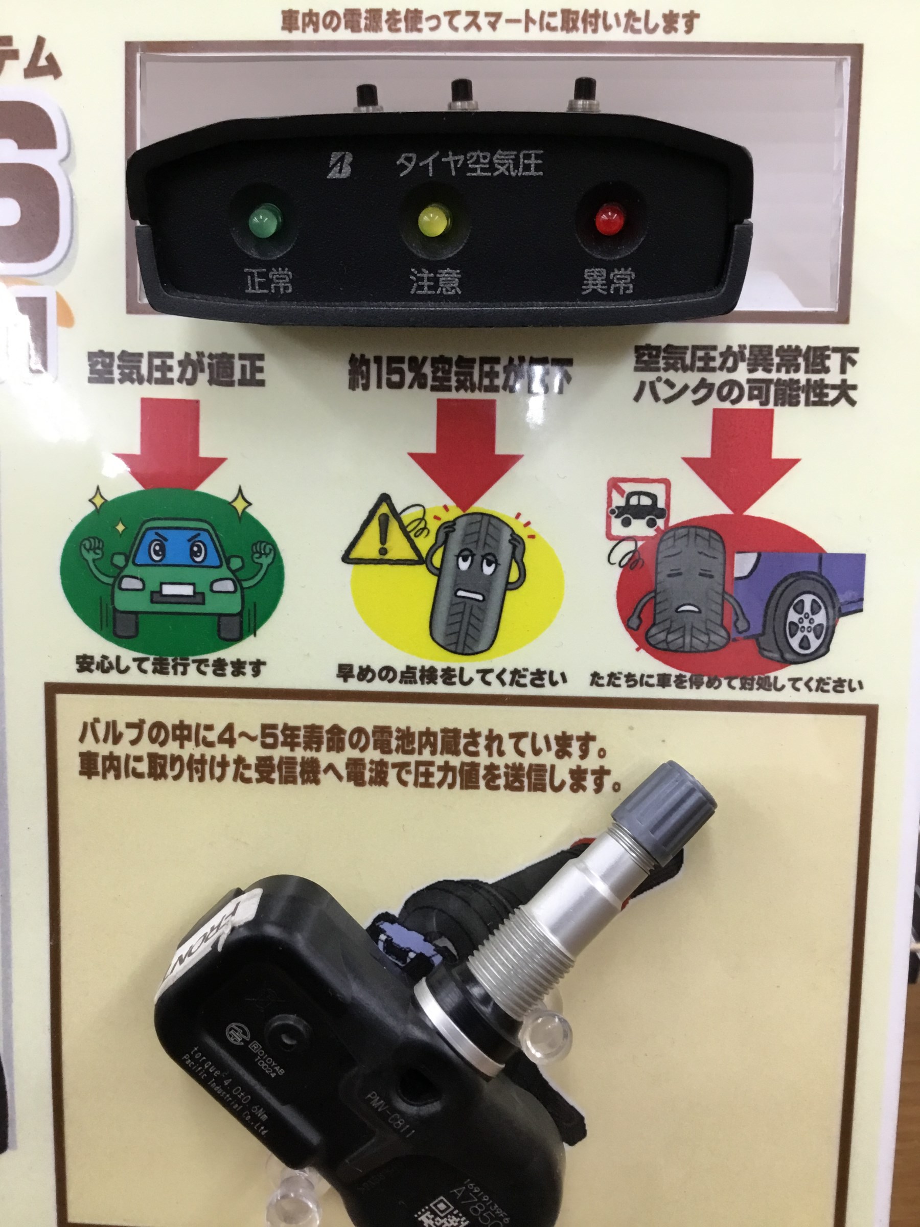 車内で空気圧の状態がわかる空気圧のセンサーも取扱いがありますので、