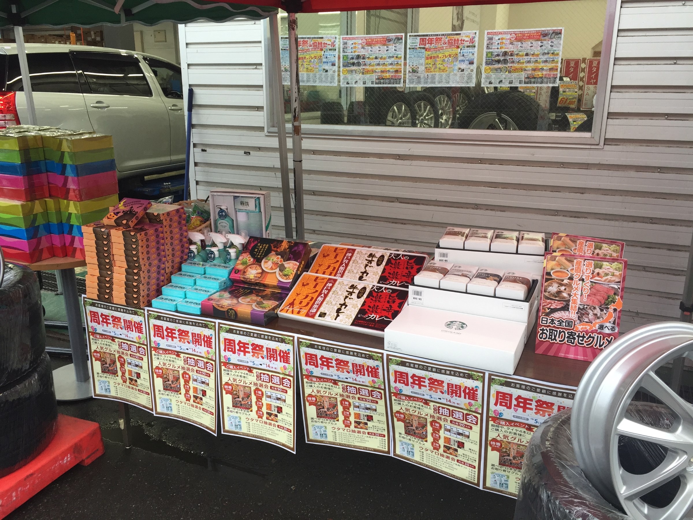 周年祭初日 ポスト 2019年10月5日 本日もたくさんのご来店ありがとうございました。 本日から周年祭が始まりました! タイヤの脱着も少しずつ始まっております! 久米スタッフの新品タイヤのお取り付け セール期間中にタイヤ4本ご購入の方にはくじ引きをご用意しております! くじが無くなり次第終了となりますので、ぜひセール期間中にご来店ください☆ 担当:佐藤