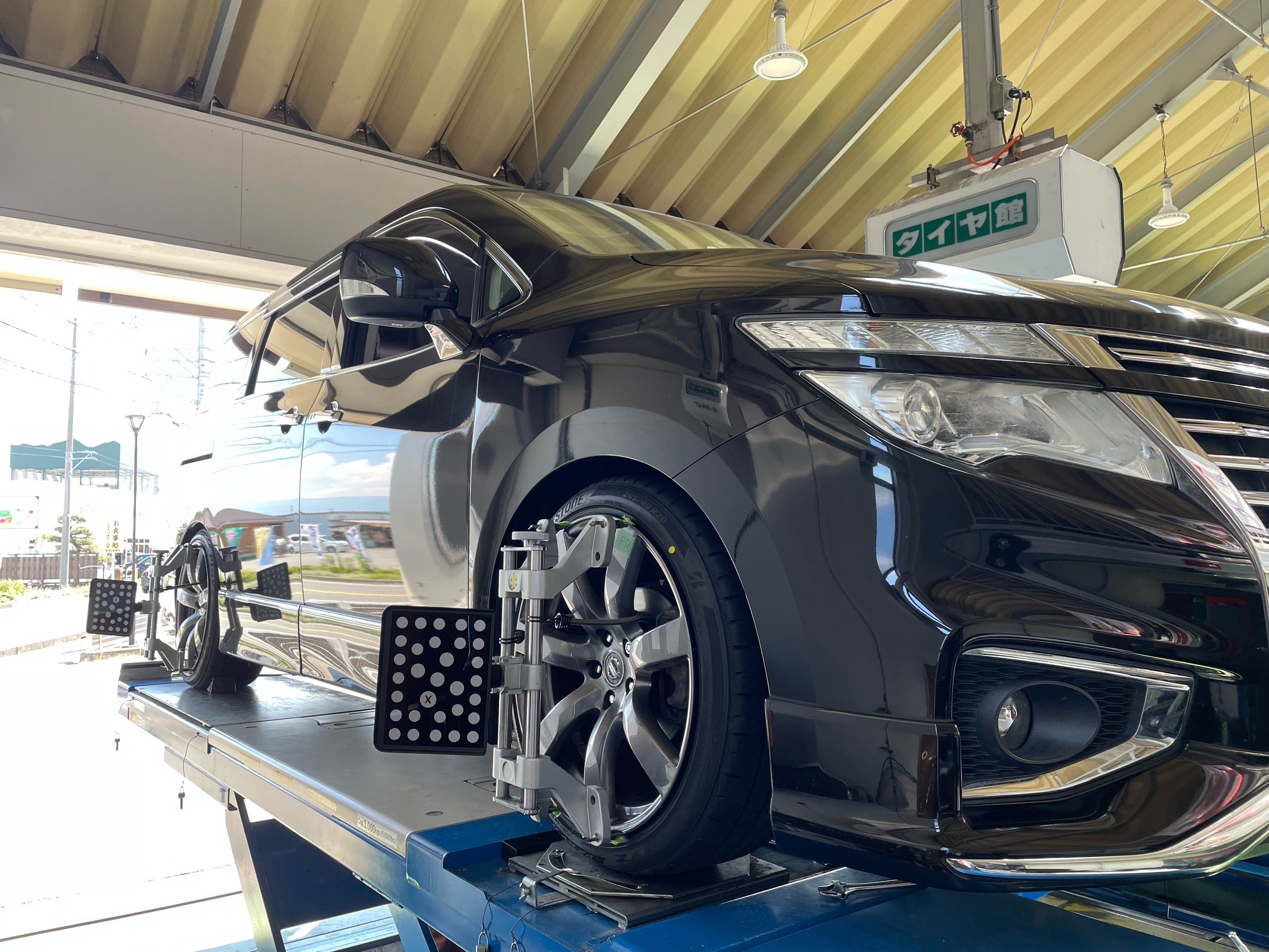 新品タイヤの交換と合わせて、アライメントも再度見直しをさせて頂きました。