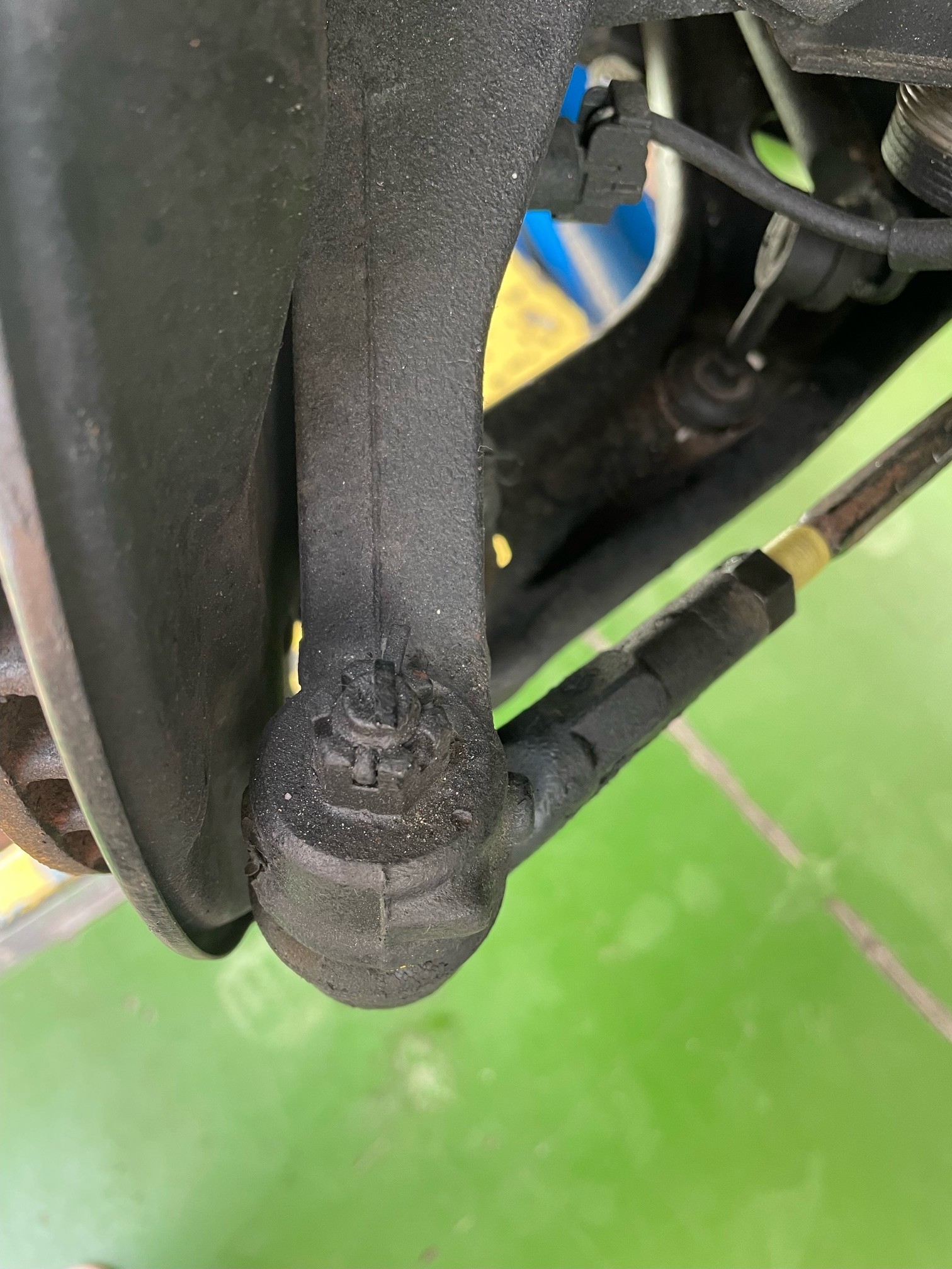 フロントタイロッドエンドが、固着をして動かず(; ・`д・´)