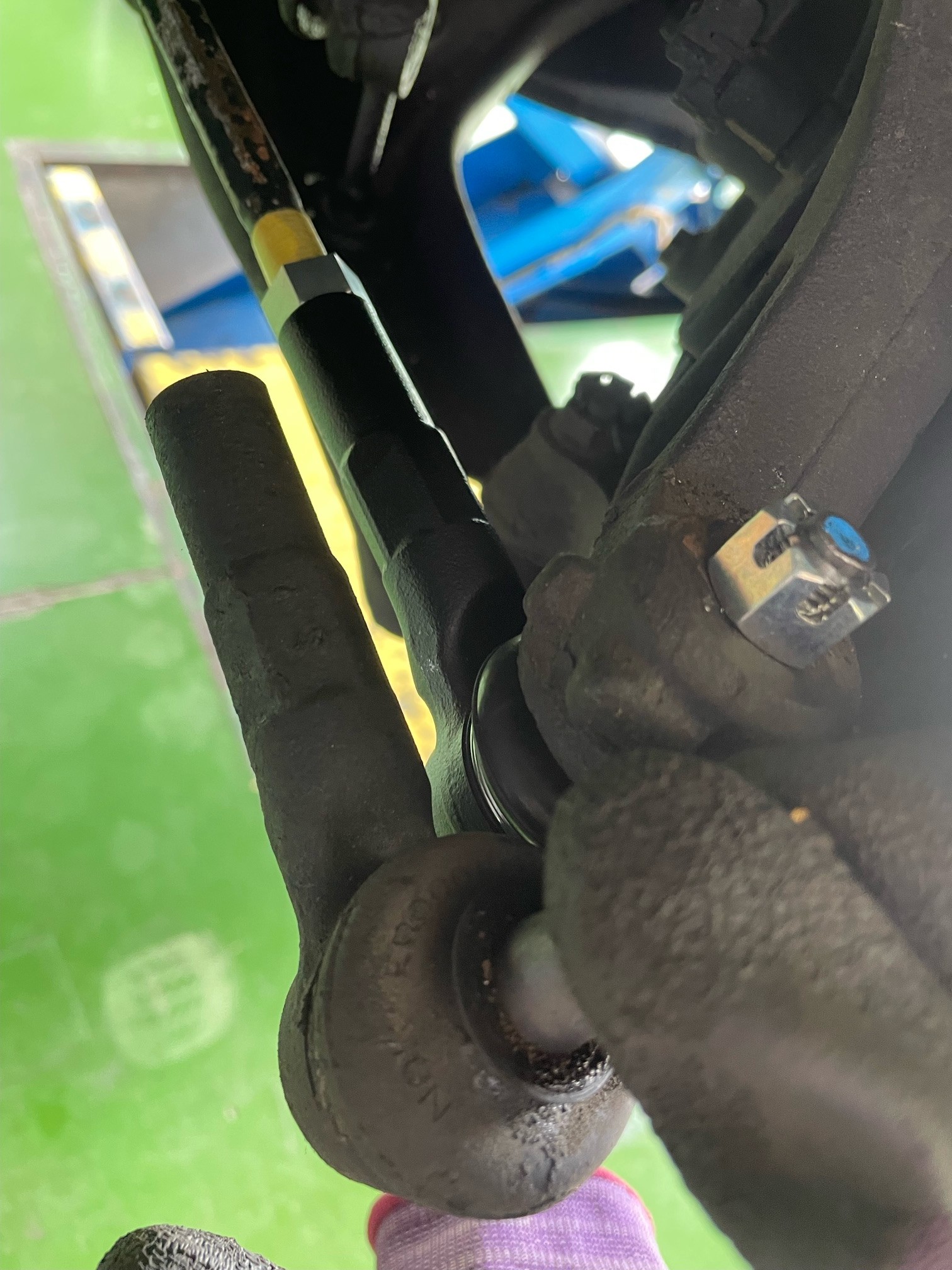 お客様とご相談して、タイロッドエンドを交換してから