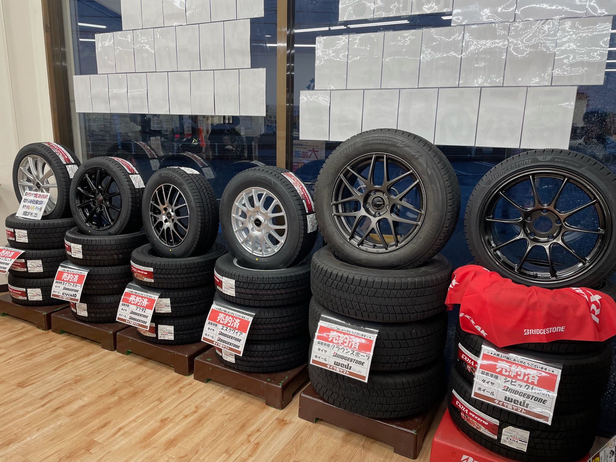 店内にもスタッドレスタイヤの売約済みが増えてきました(^^)/