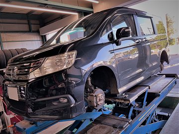 ホンダRK5型ステップワゴン、タイヤ交換&アライメント調整!