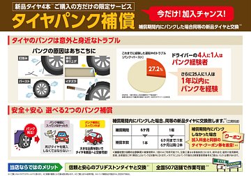 タイヤ館のパンク補償おすすめです!! ※タイヤ4本ご購入の方のみご利用いただけます。(有料です)