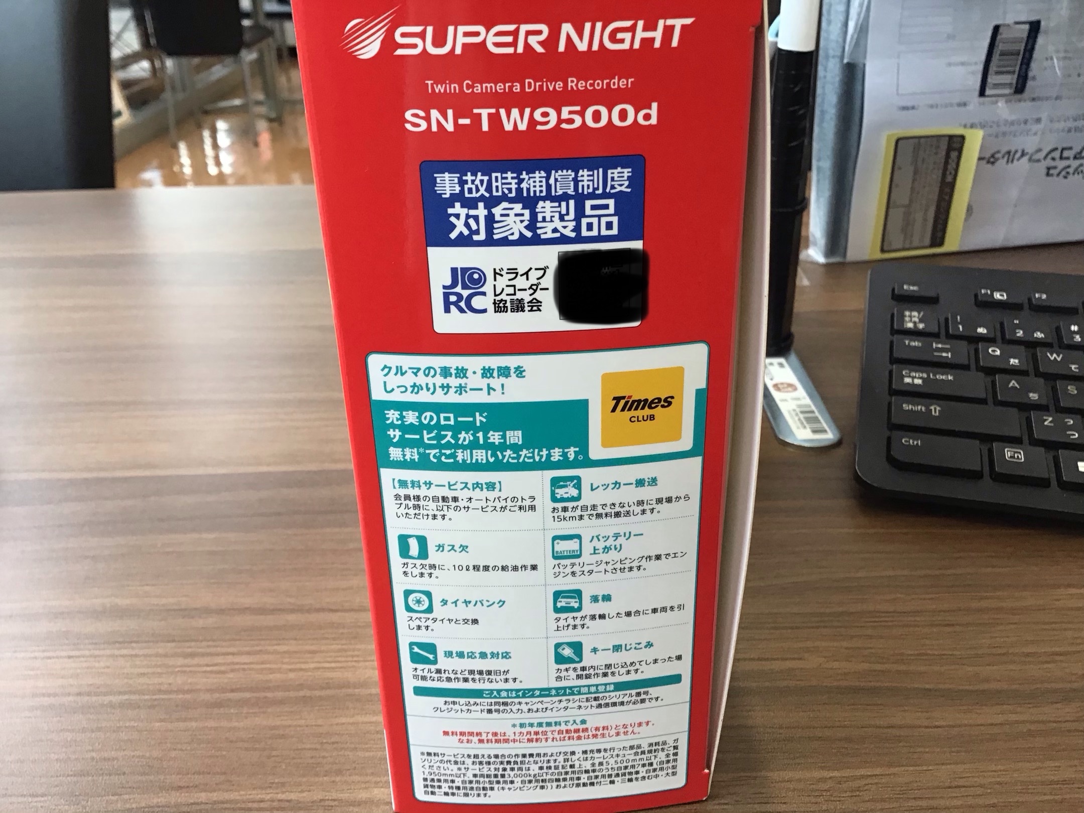 前後タイプで記録SDは16GBが付属、オプションで駐車監視機能もあります