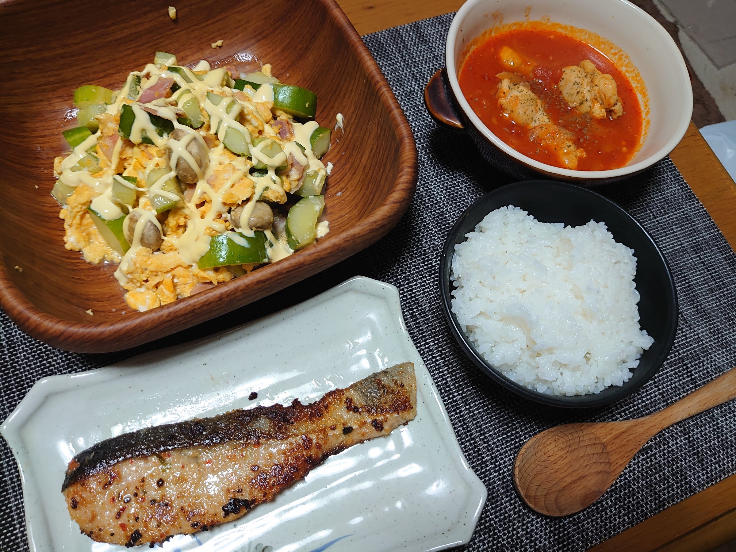 (写真右上)スープは鶏肉のトマトスープです。