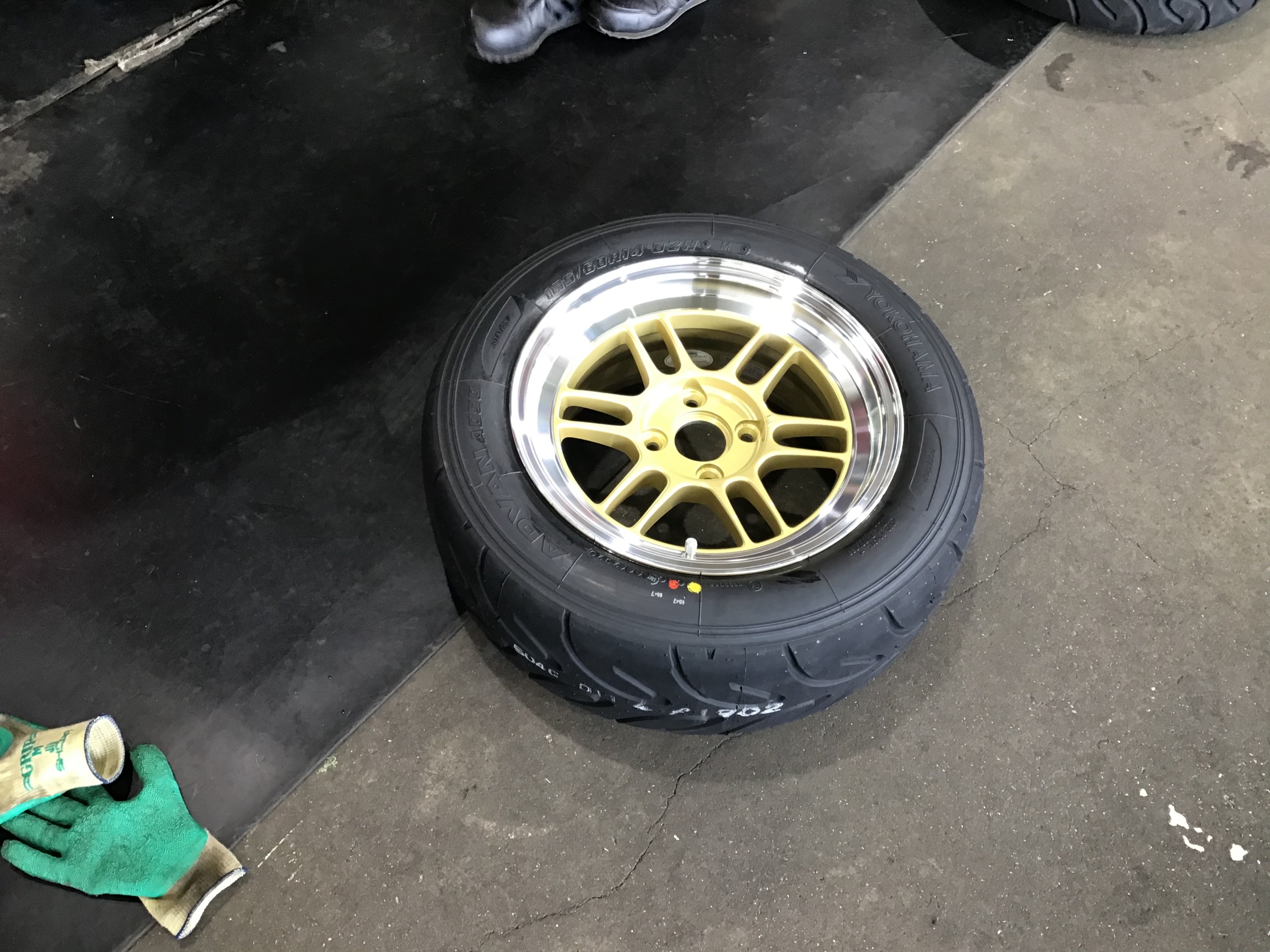 本日も暑い日が続きます。さて本日の作業は業者様からのご依頼で新品ホイールの組み付けを承りました(*≧∀≦*)な、なんとエンケイのRPF1じゃないですか!しかもゴールド色ってあるんですねっ!ホイールのお持ち込みだったのでお車にお取り付けしたところが見れなかったのが残念です。゚(゚´Д`゚)゚。