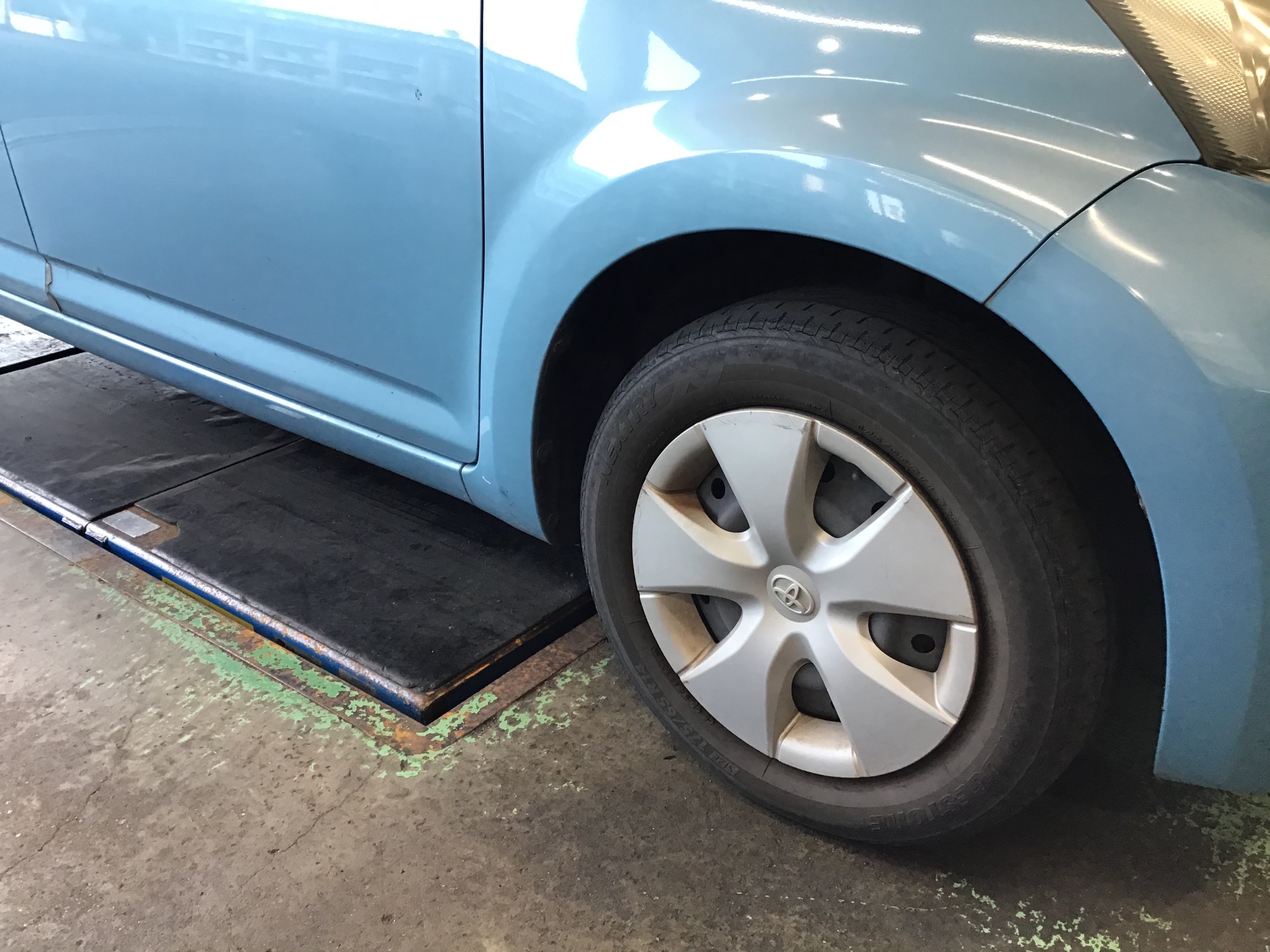 本日はトヨタパッソのタイヤ交換作業になります( ^ω^ )装着されていたタイヤはひび割れがだいぶ酷くお客様も不安とのことでご来店されました。