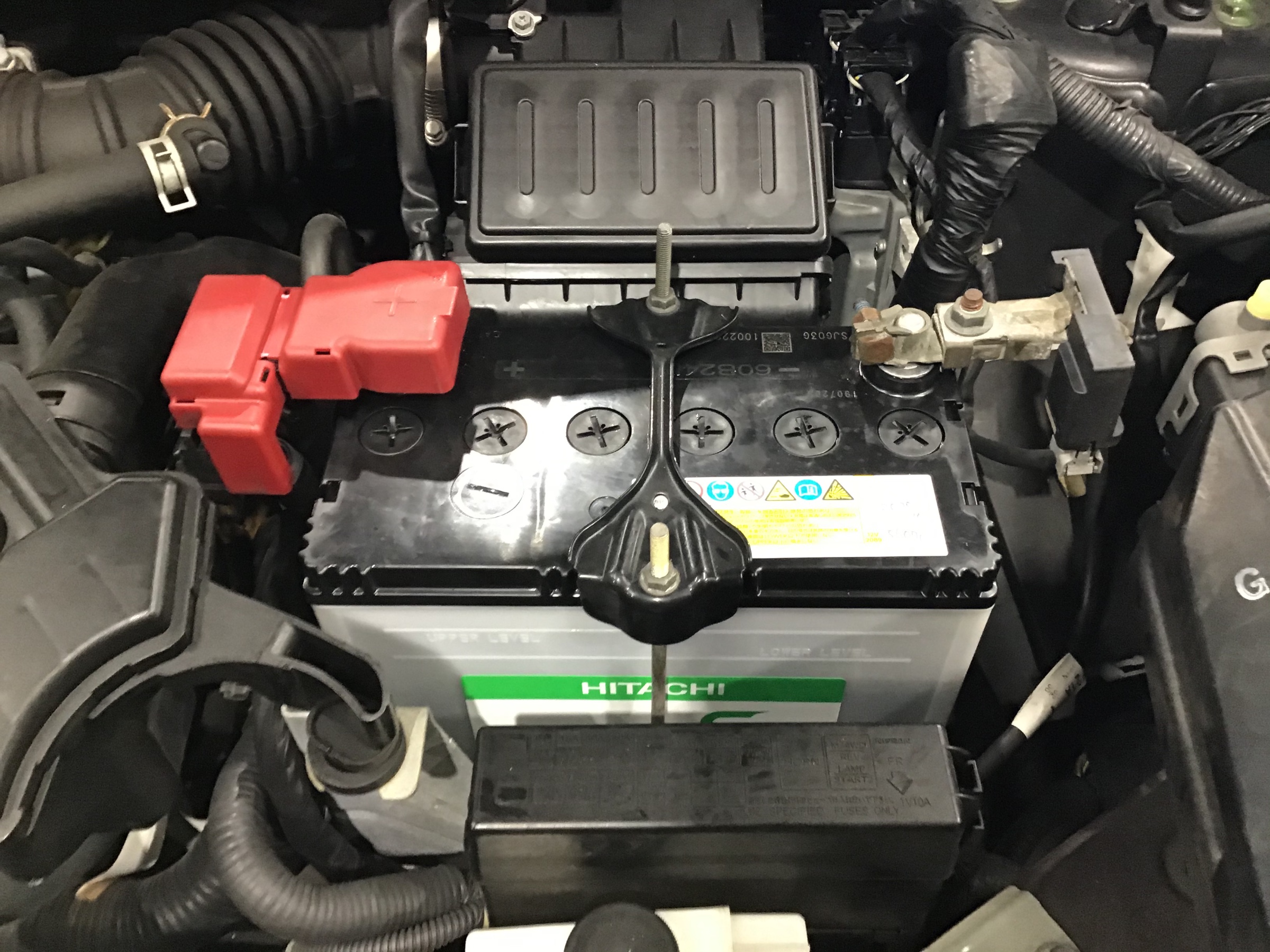 本日の作業は日産ノートでご来店のお客様のバッテリー、タイヤアルミホイールセットのお取り付けです(=´∀`)