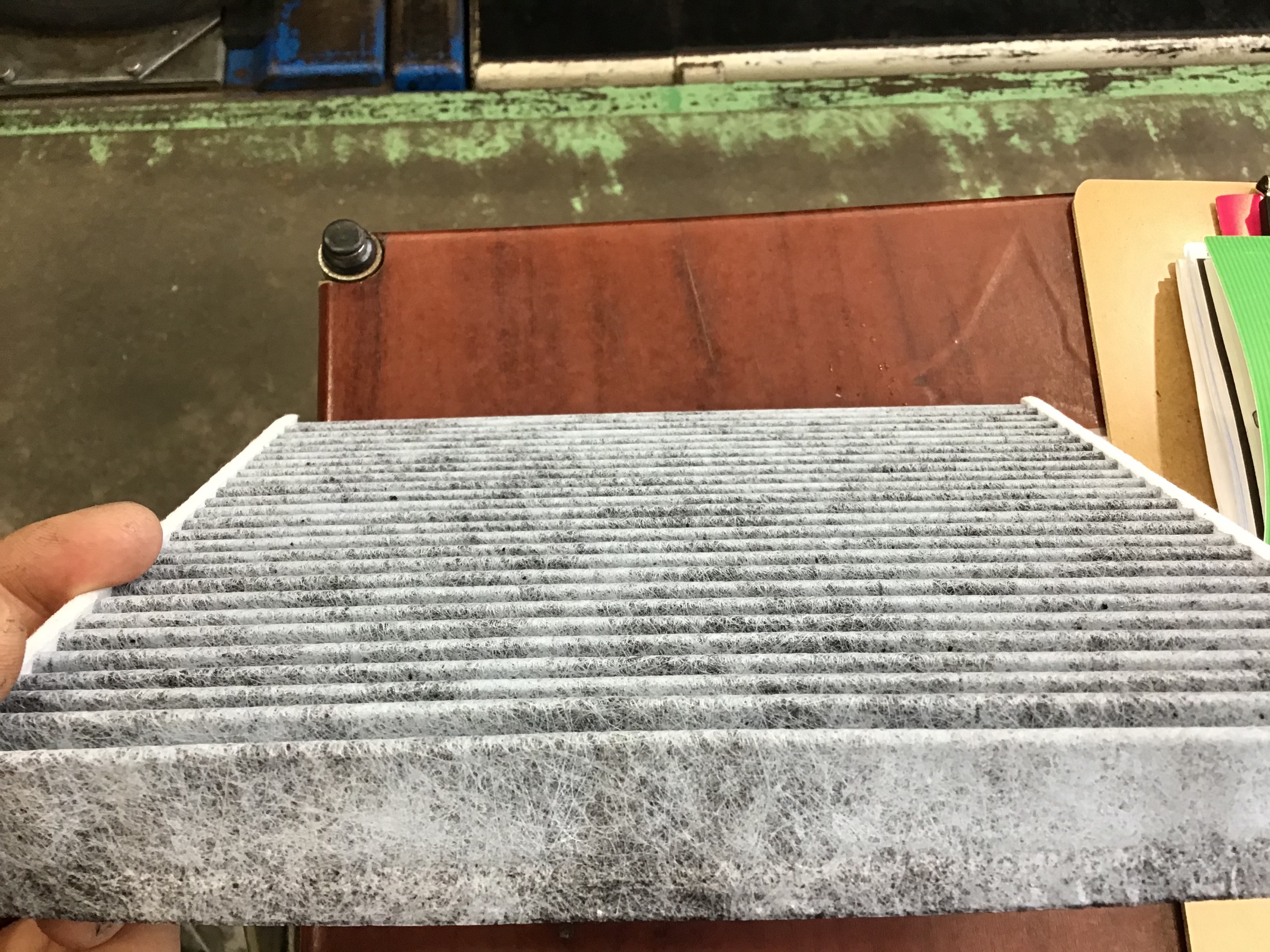エアコンフィルターの交換目安は1年程度となっております。前回の交換が不明なお客様はスタッフまでお気軽にお声掛けください。一部車種やエアコンフィルターの設定のないものは作業が出来ないことがあります