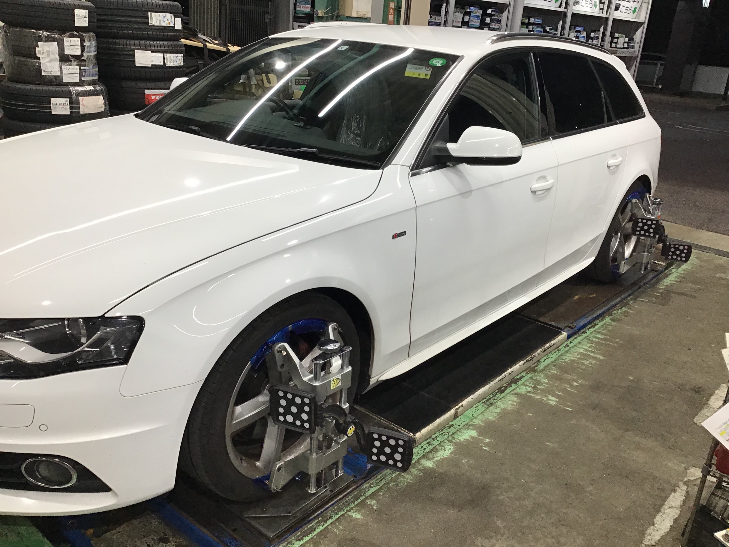 本日はアウディA4のアライメント作業を実施しました。作業前に機械を取り付けて測定したところ少々ズレがあったので調整させていただきました(о´∀`о)