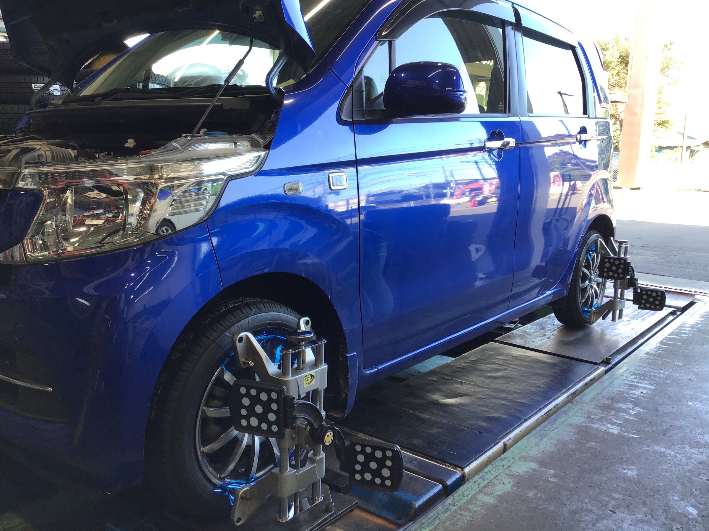 本日はホンダNワゴンのタイヤ交換とアライメント作業を実施させていただきました(゚∀゚)タイヤがだいぶ片減りしておりお客様も気になっていらしたとのこと。アライメント測定をしてみるとだいぶ数値が狂っておりましたのでバッチリ調整させて戴きタイヤも新品にさせていただきました(((o(*゚▽゚*)o)))