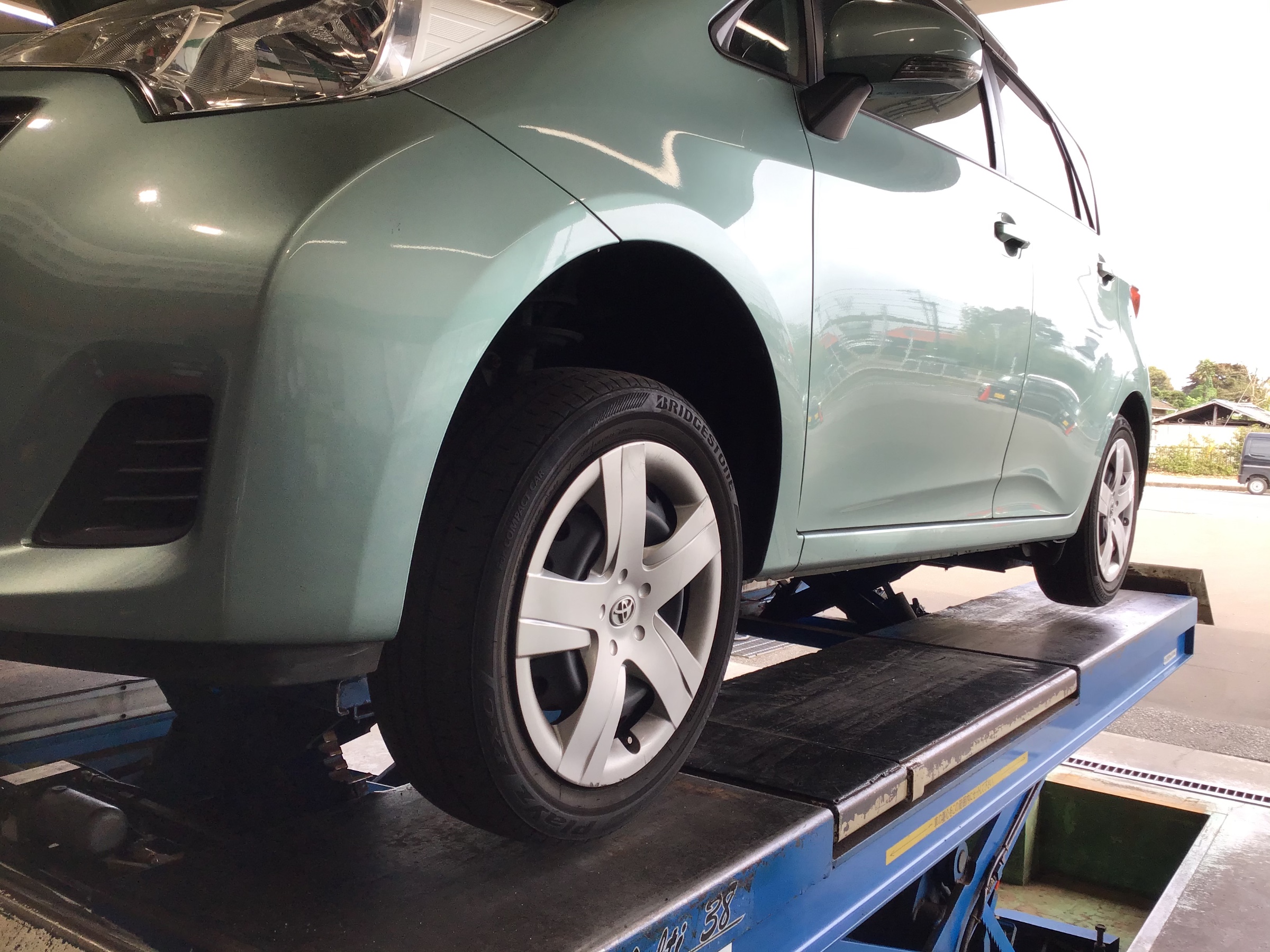 本日はトヨタラクティスのタイヤ交換作業です(=´∀`)ご来店された時のタイヤのひび割れがだいぶ出ておりお客様も不安だったようでしたのでプレイズPXⅡに交換させていただきお客様もとても喜んでいただきました✌︎('ω'✌︎ )