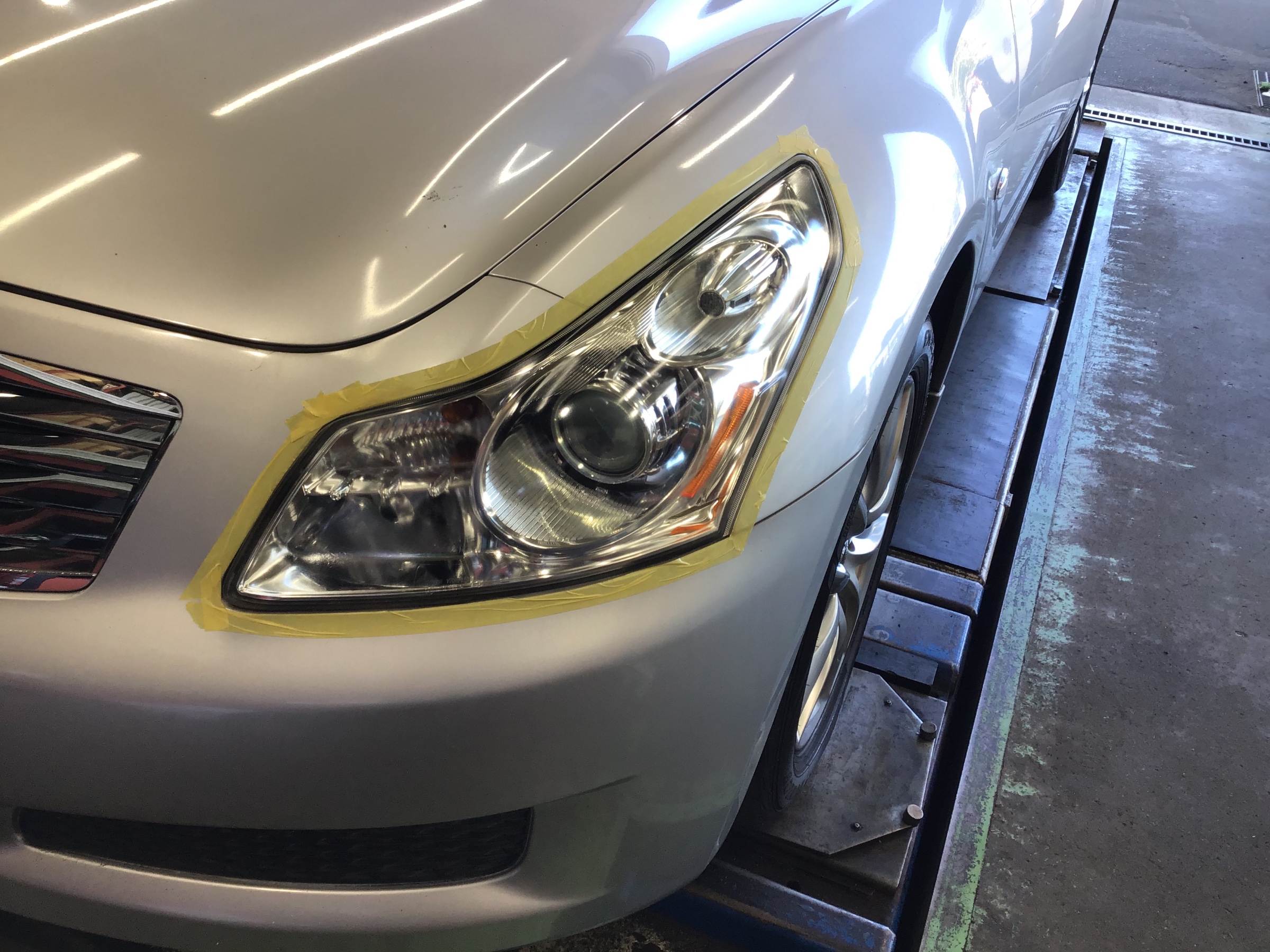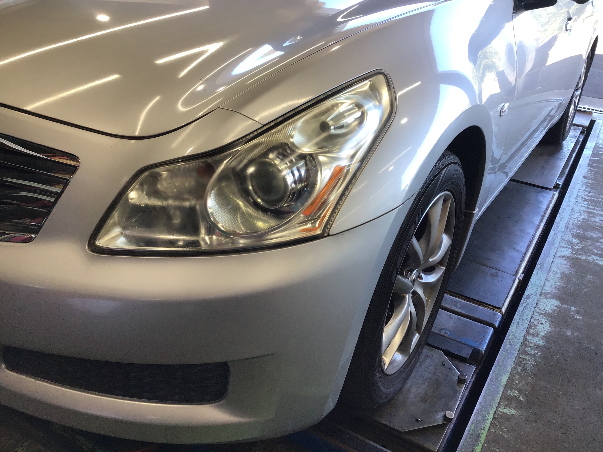 本日は日産スカイラインのヘッドライトコーティングです(・∀・)ヘッドライトのくすみがお客様も気ににされていたようで、作業をさせていただきました♪( ´▽`)