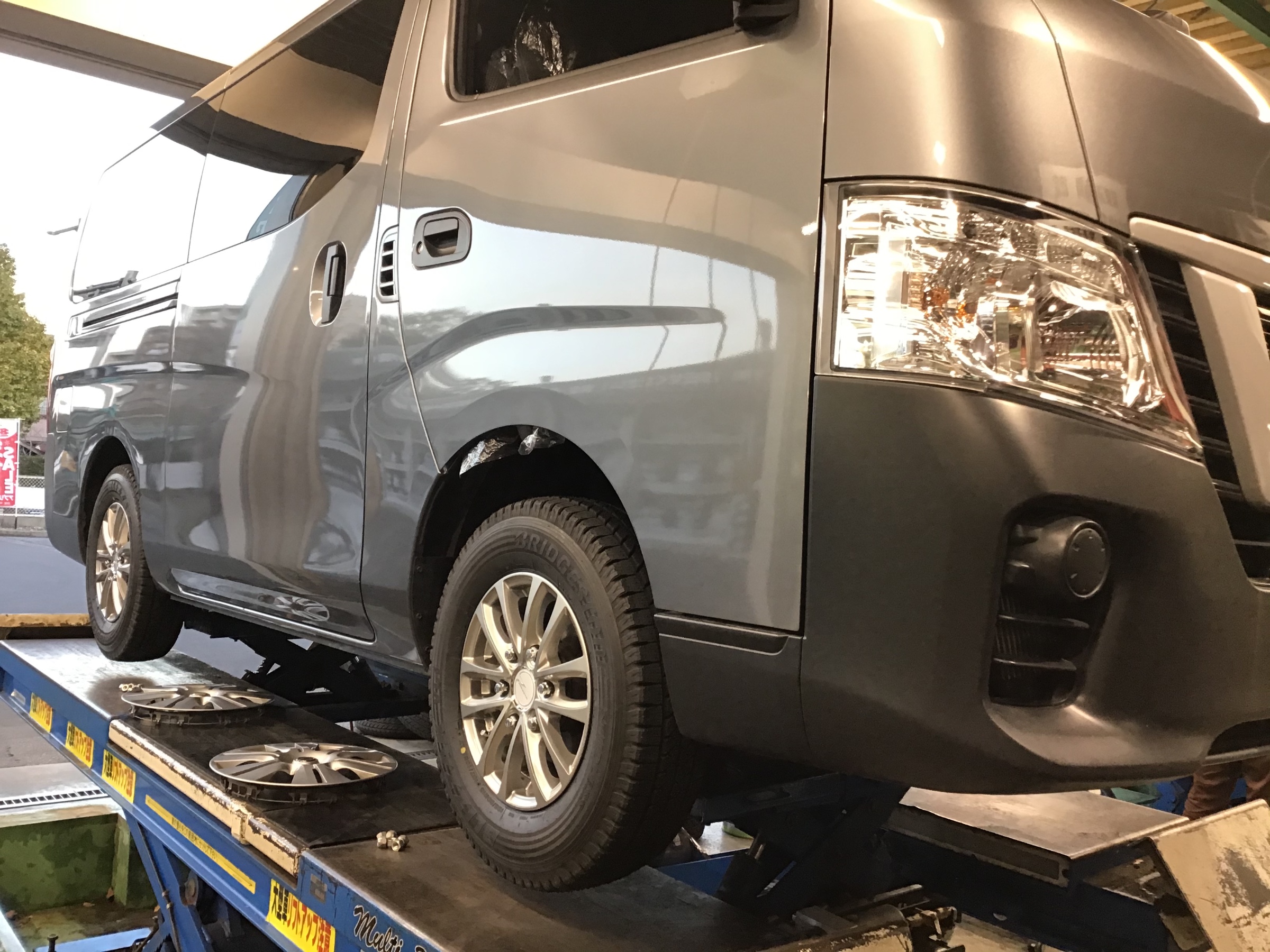 本日の作業は日産キャラバンのスタッドレスセットお取り付けです✌︎('ω'✌︎ )