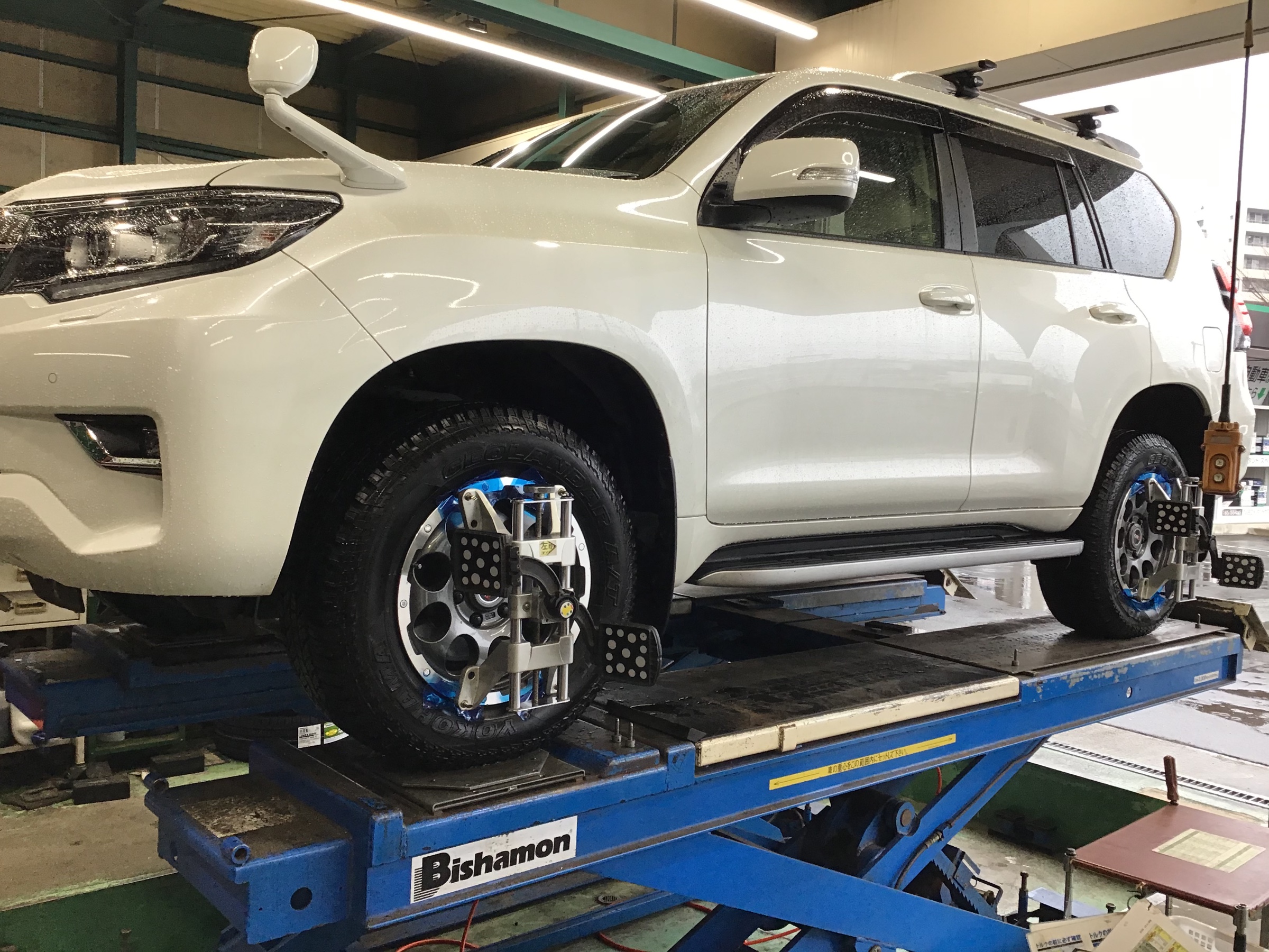 本日の作業はトヨタランドクルーザープラドのアライメント作業です♪( ´▽`)