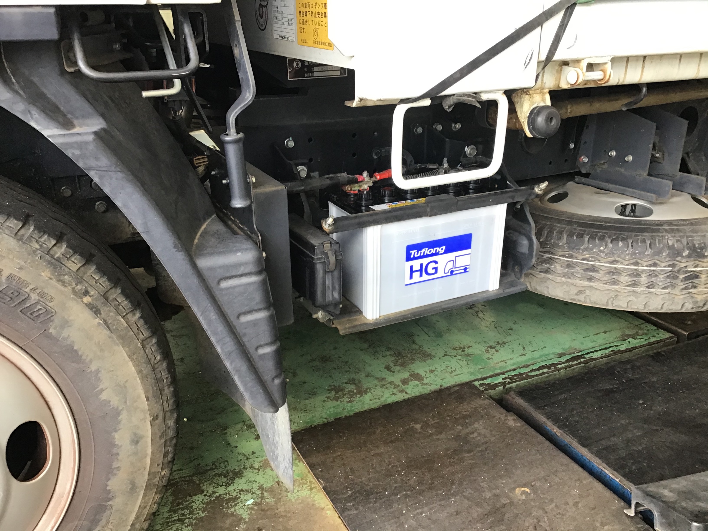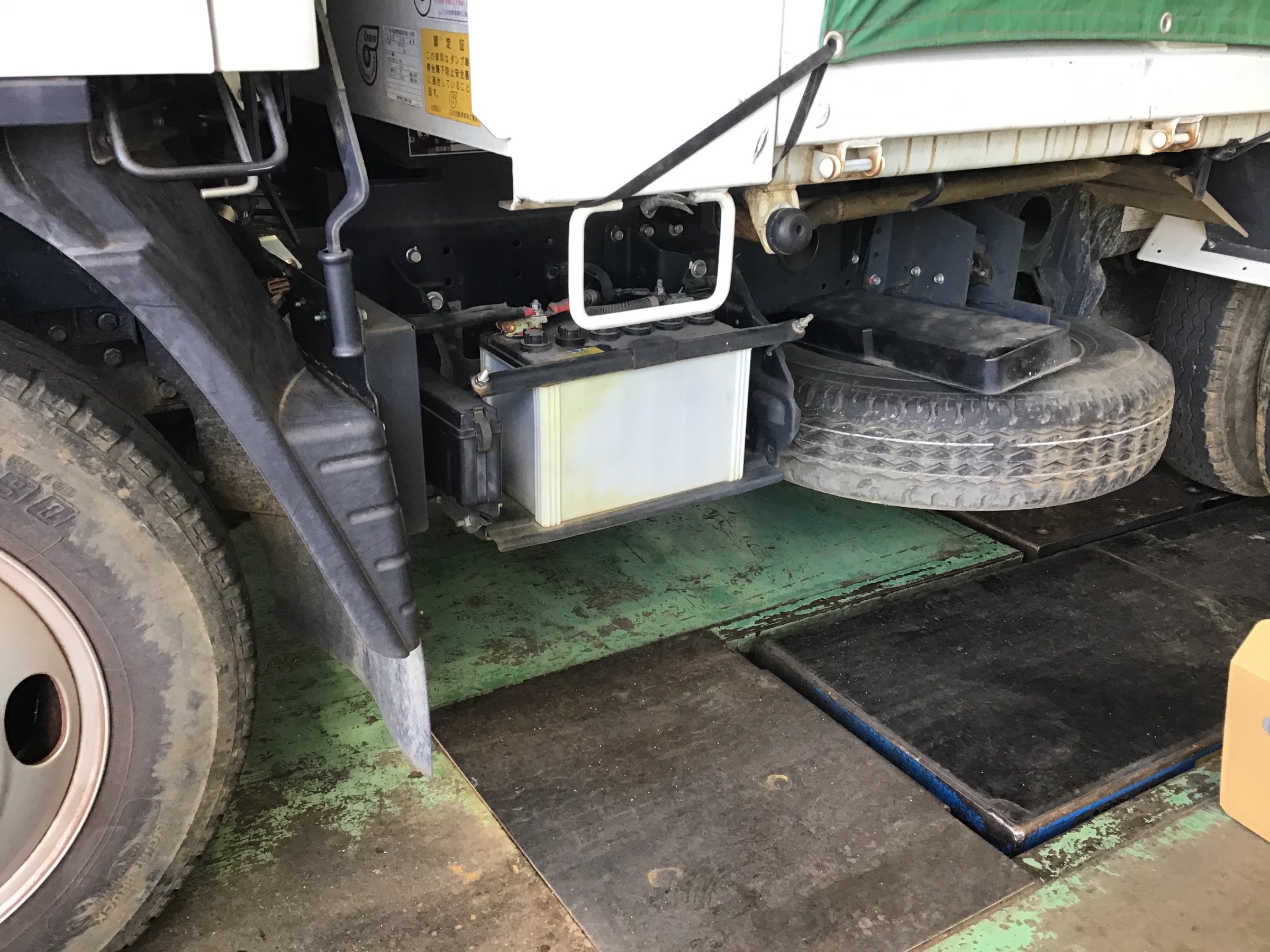 本日の作業は三菱キャンターのバッテリー交換です( ◠‿◠ )